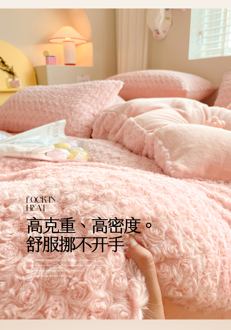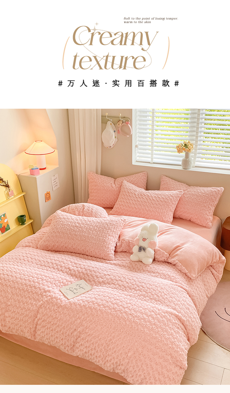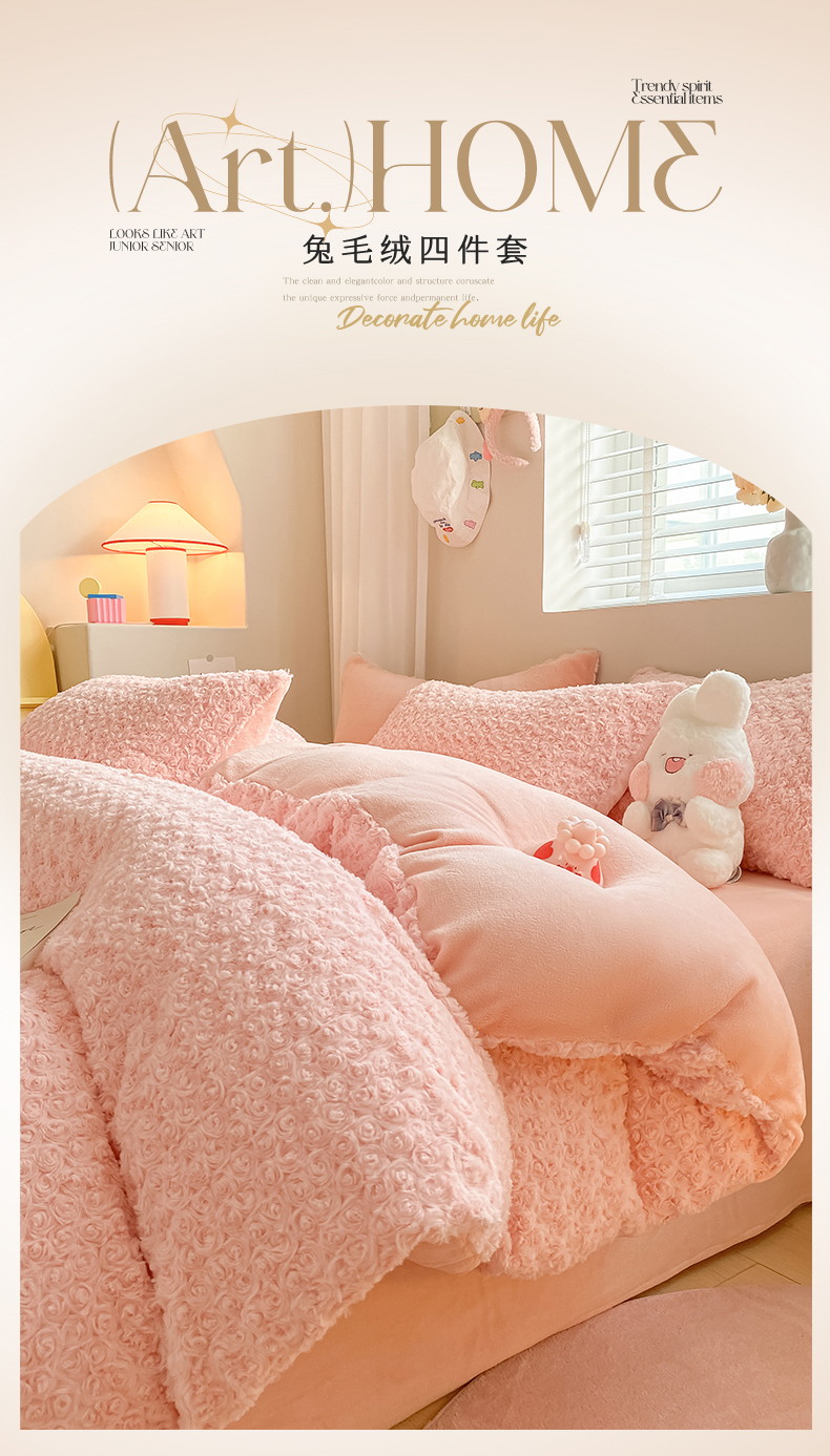 当前位置: 91家纺网 > 商品网购 > 床品套件 > 四件套 > 牛奶绒四件套 > 名兮家居 2025新款高克重立体仿兔绒牛奶绒四件套 玫瑰-粉