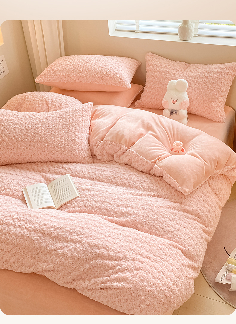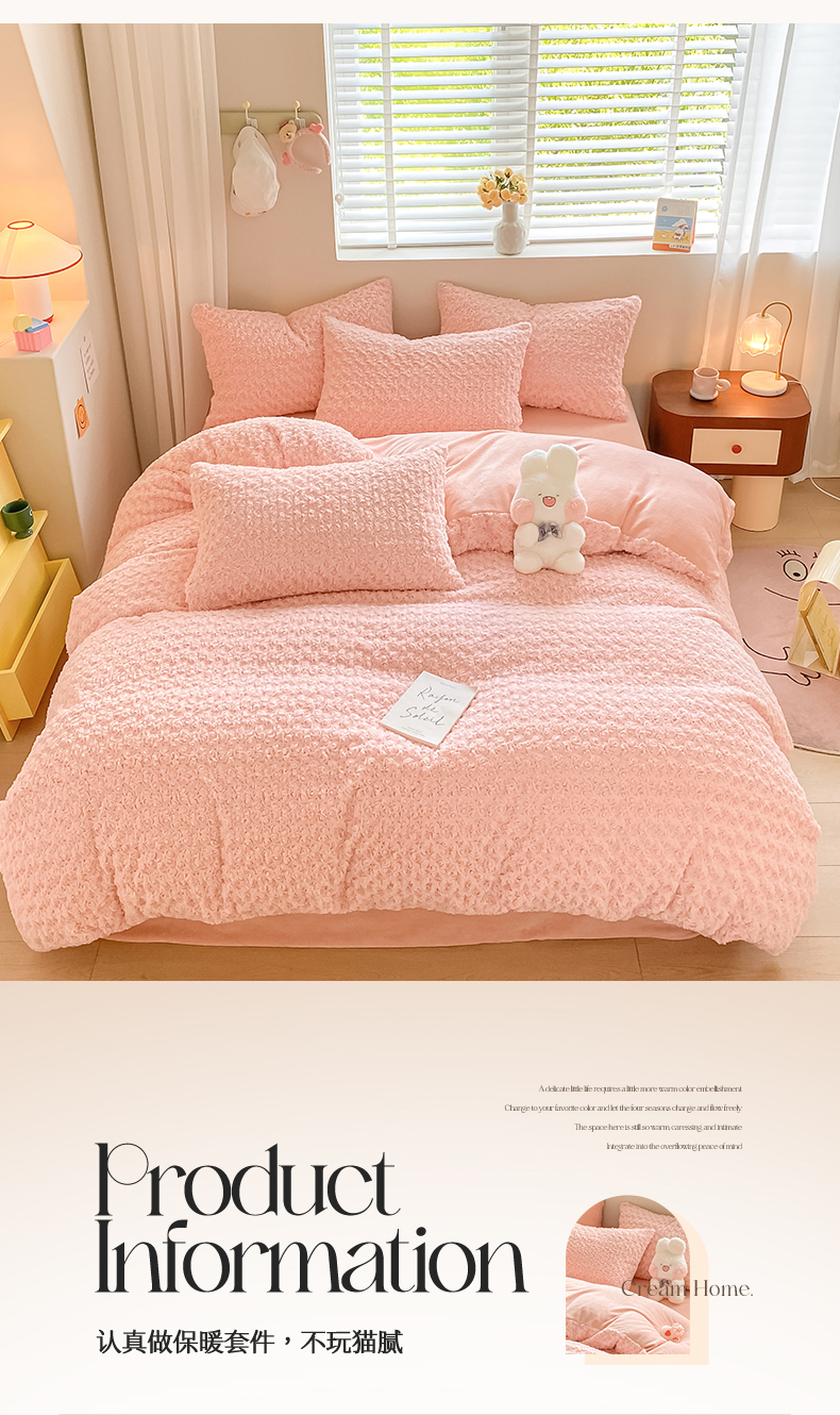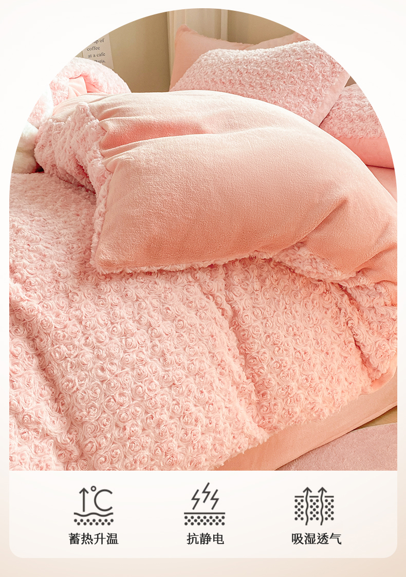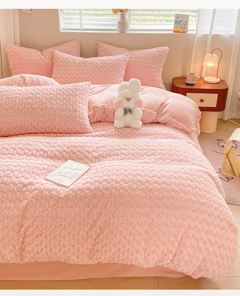 当前位置: 91家纺网 > 商品网购 > 床品套件 > 四件套 > 牛奶绒四件套 > 名兮家居 2025新款高克重立体仿兔绒牛奶绒四件套 玫瑰-粉