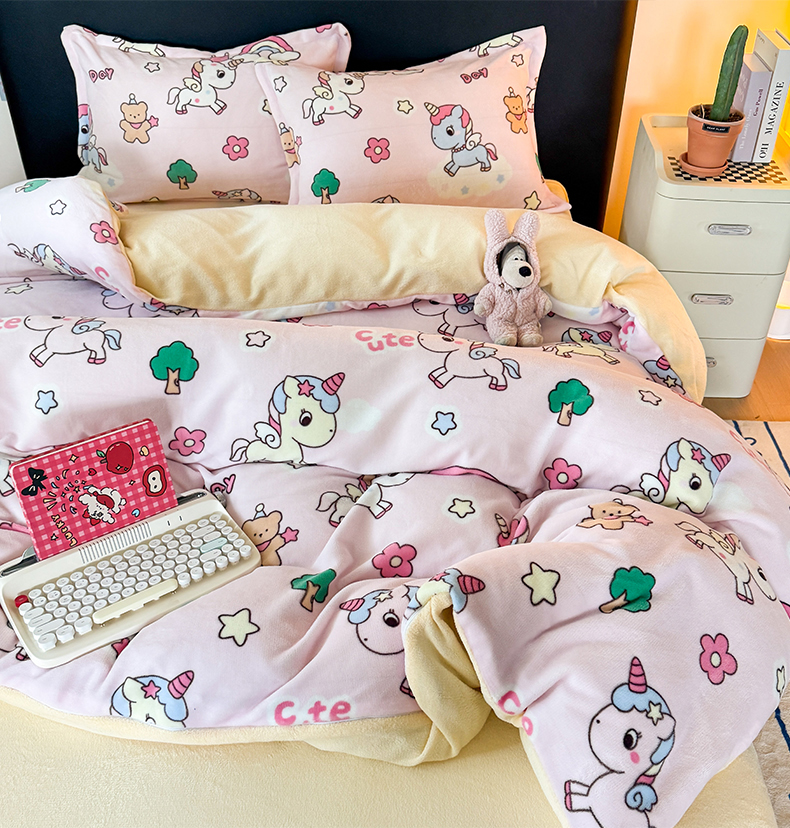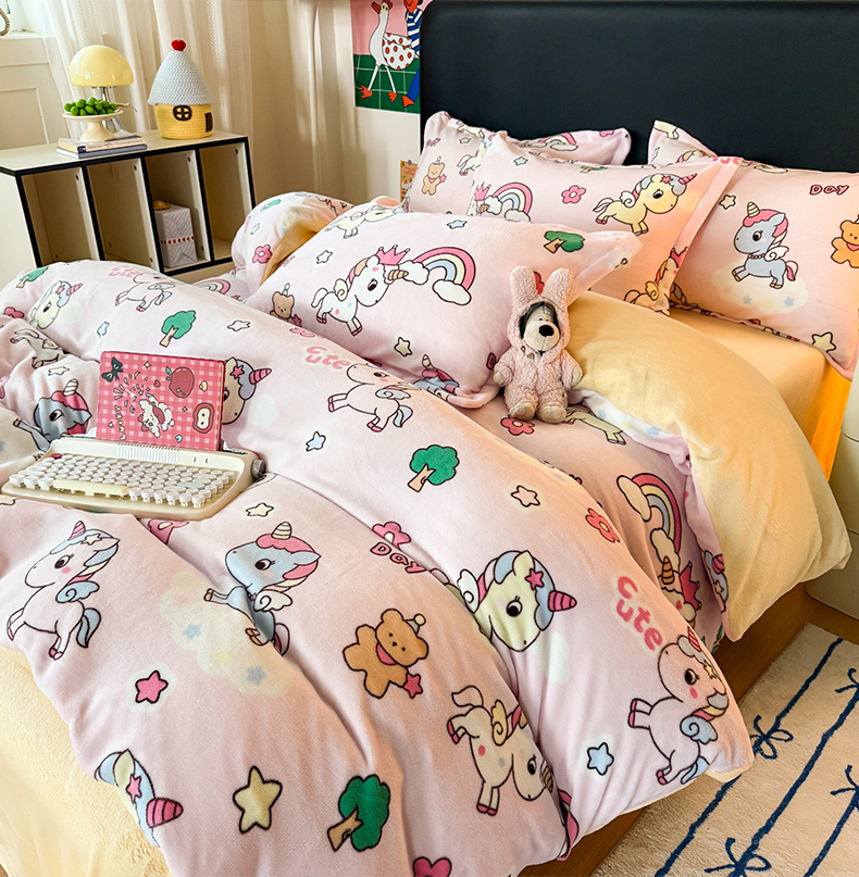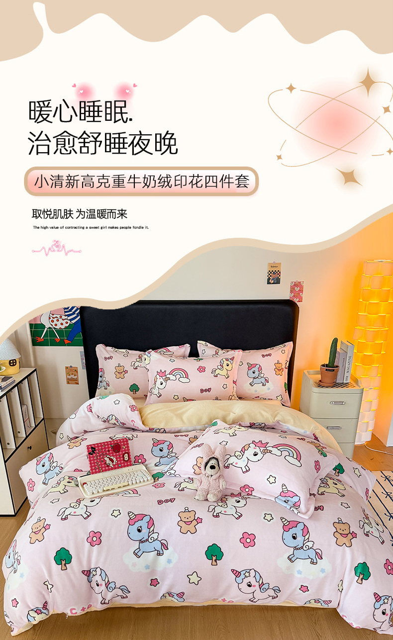 当前位置: 91家纺网 > 商品网购 > 床品套件 > 四件套 > 牛奶绒四件套 > 艾特你 2025新款小清新高克重牛奶绒印花四件套 彩虹宝丽