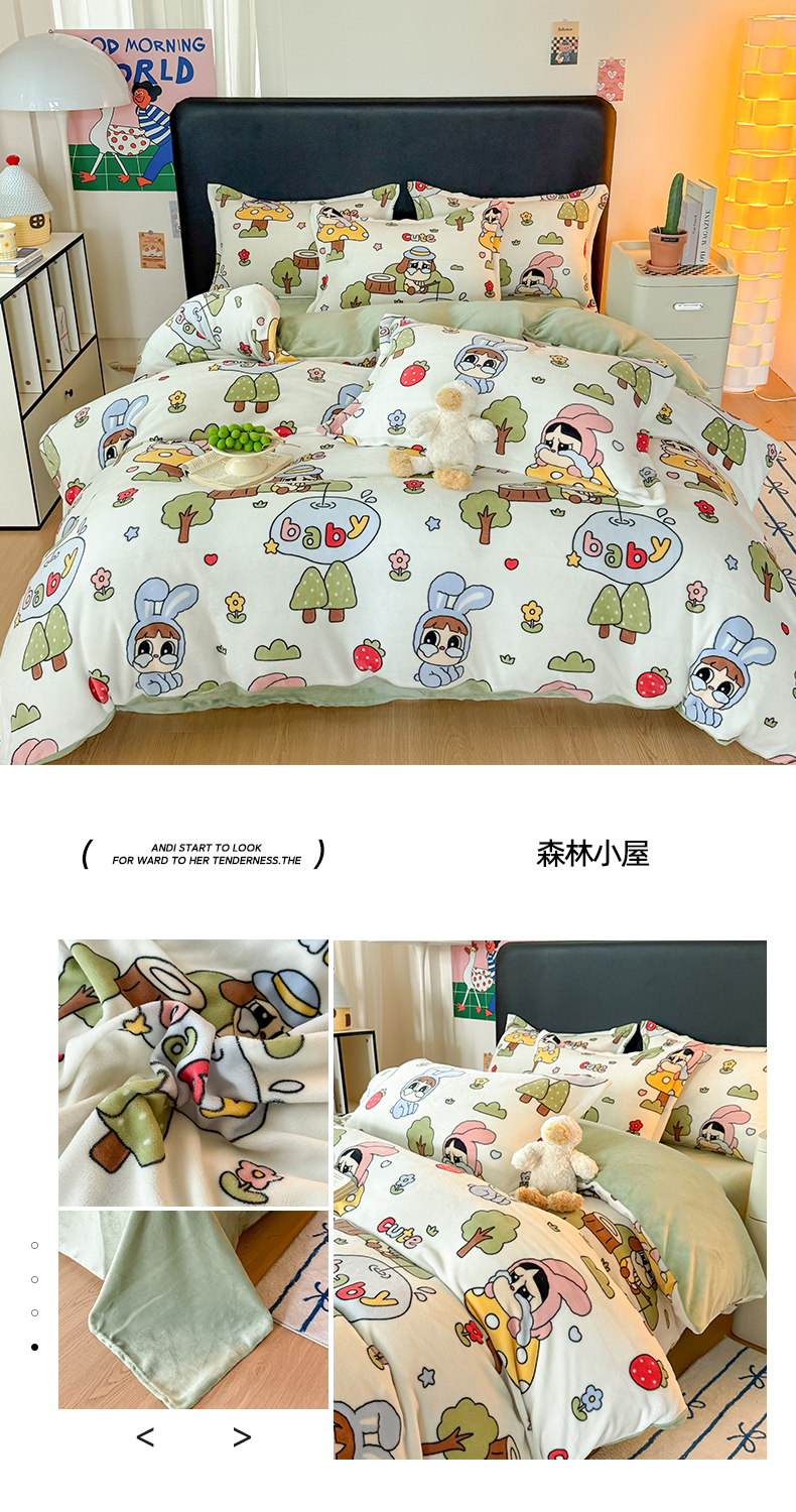 当前位置: 91家纺网 > 商品网购 > 床品套件 > 四件套 > 牛奶绒四件套 > 艾特你 2025新款小清新高克重牛奶绒印花四件套 库米洛