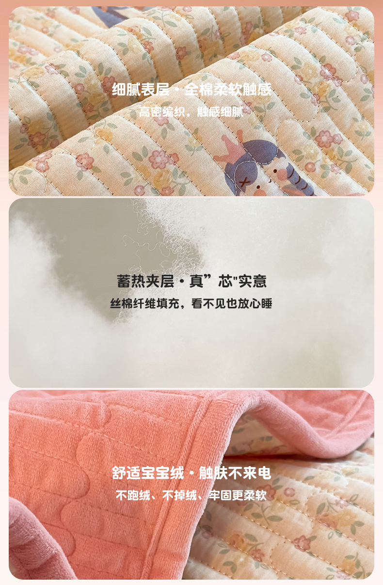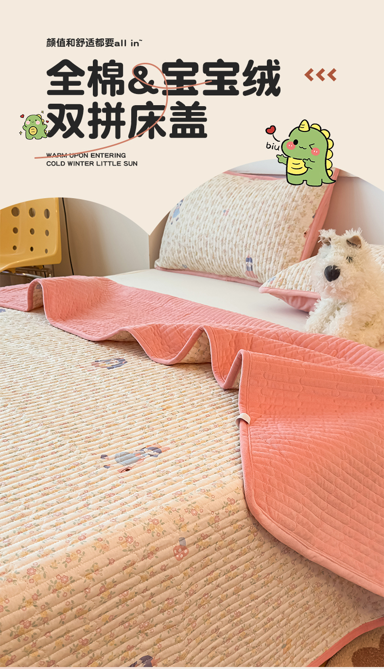 • 91家纺网 家纺一手货源 找家纺 恒爱家纺 2025新款全棉宝宝绒双拼床盖三件套 美少女