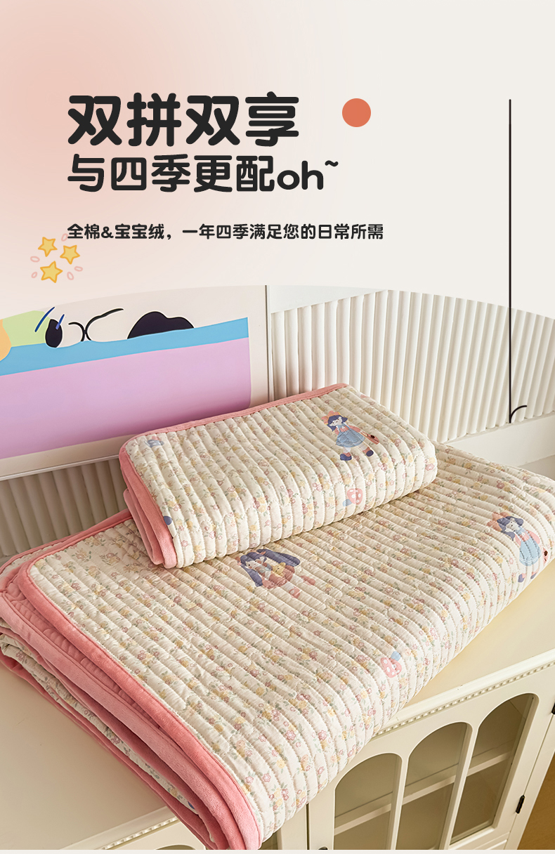 当前位置: 91家纺网 > 商品网购 > 床上用品 > 床盖 > 恒爱家纺 2025新款全棉宝宝绒双拼床盖三件套 美少女