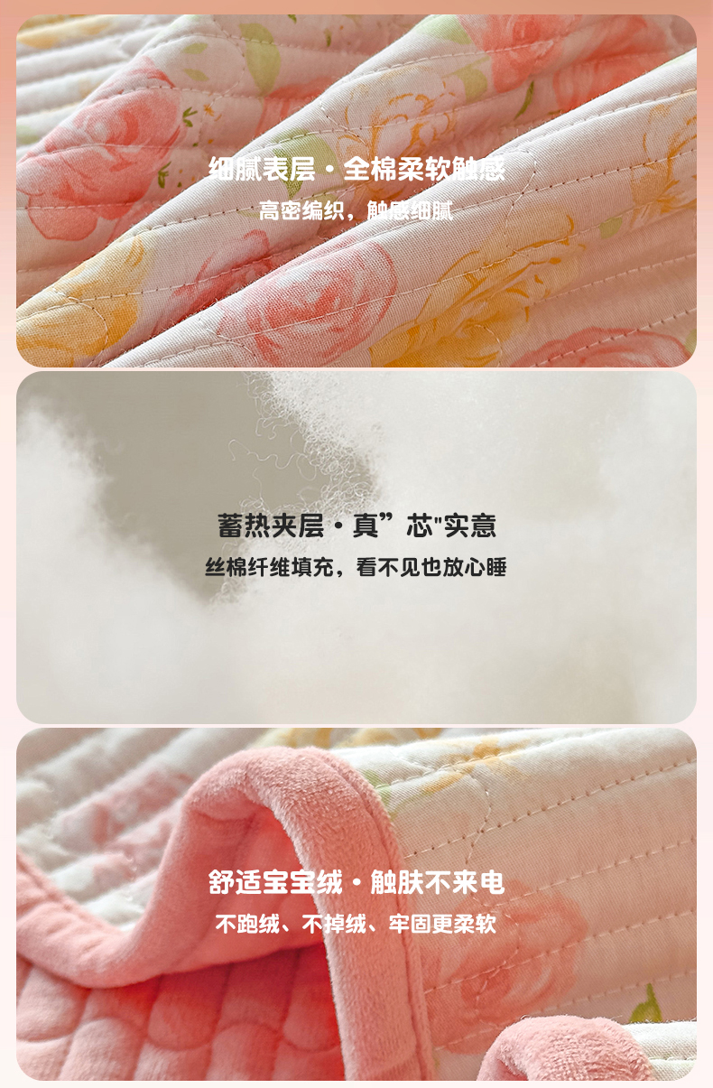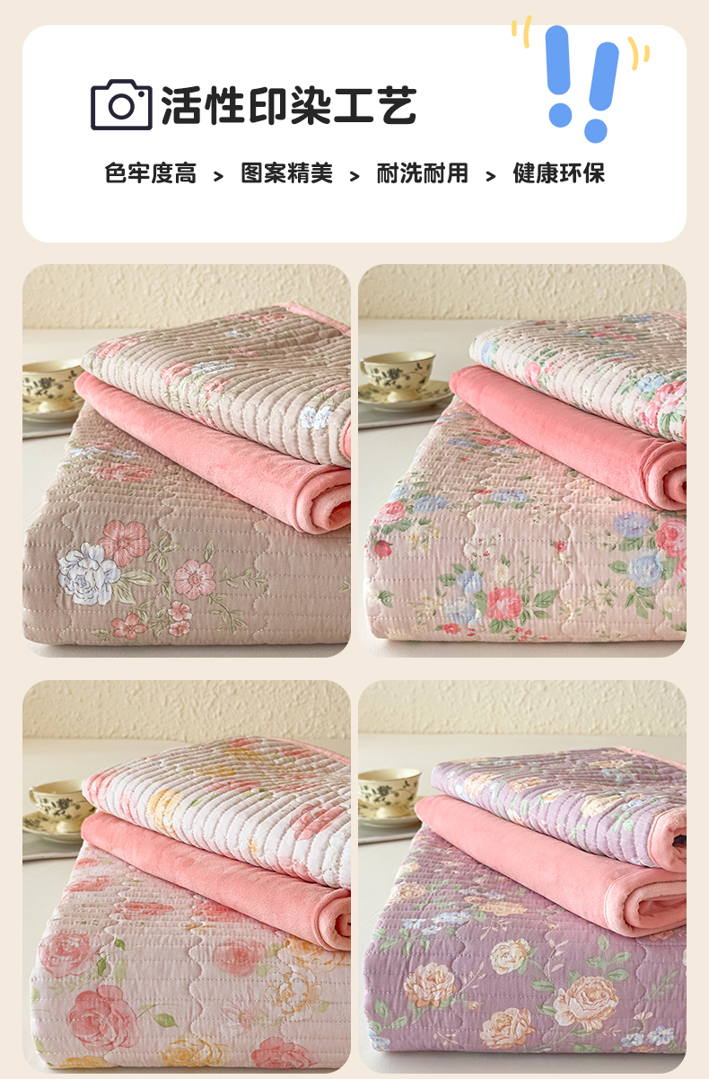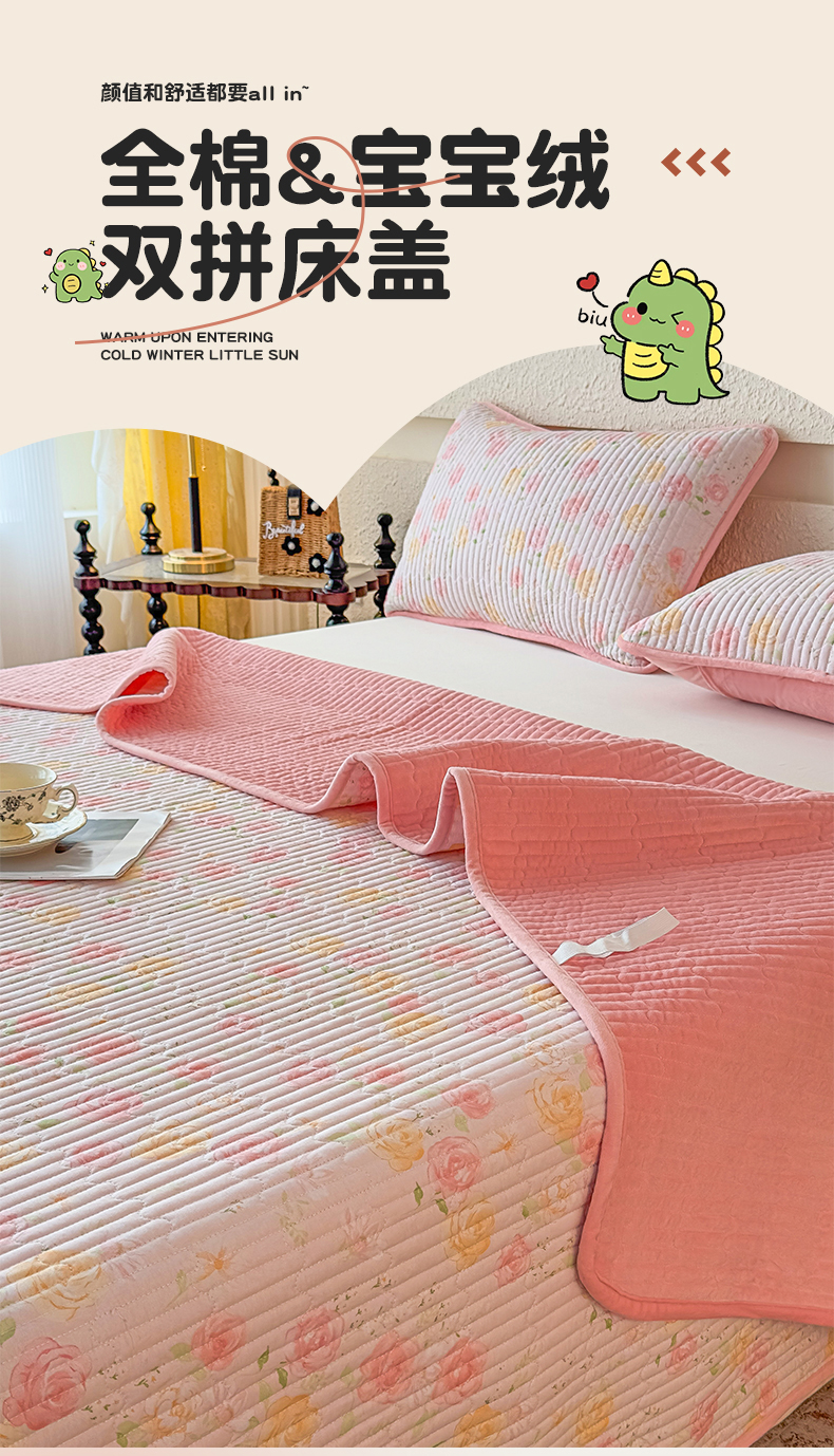 • 91家纺网 家纺一手货源 找家纺 恒爱家纺 2025新款全棉宝宝绒双拼床盖三件套 艳丽动人