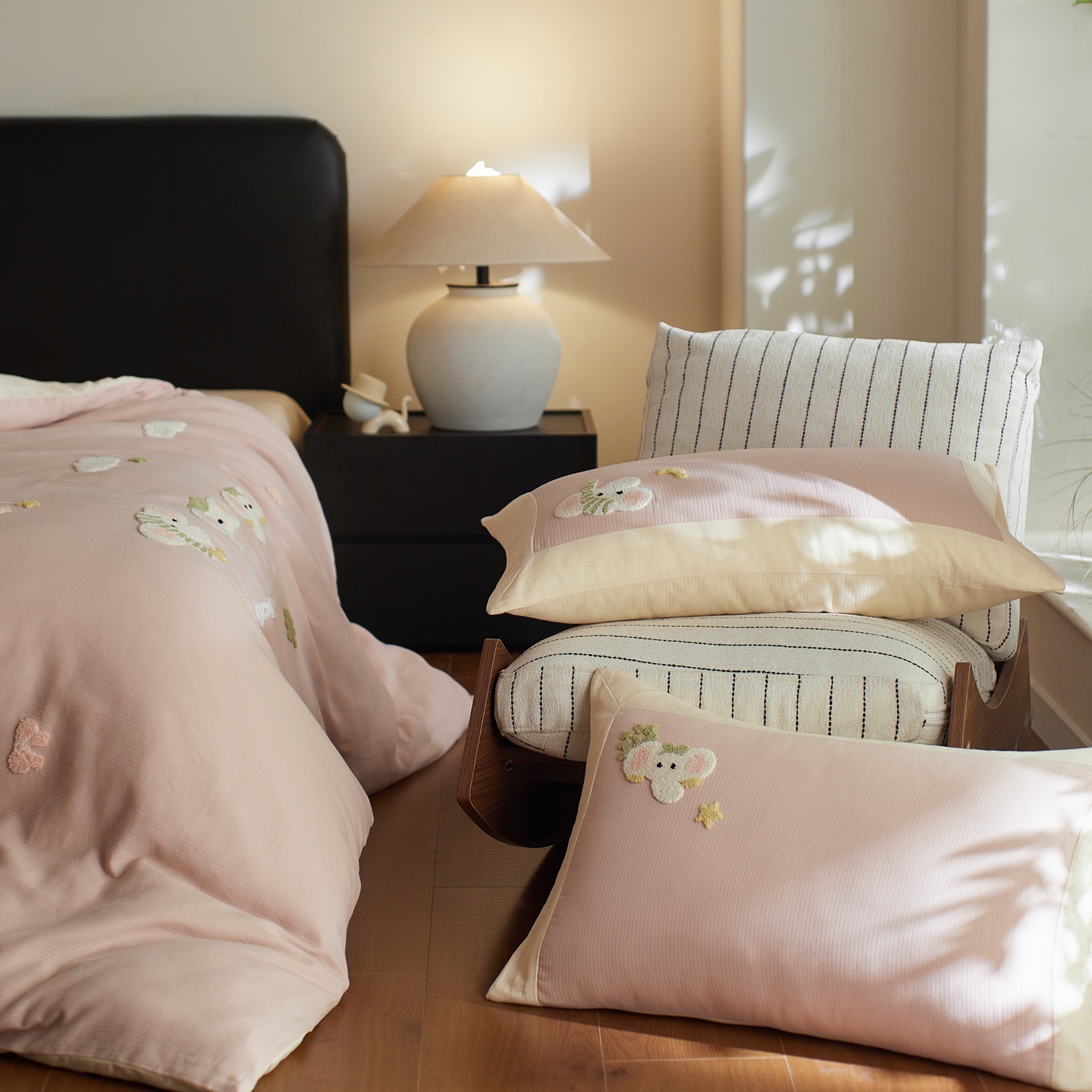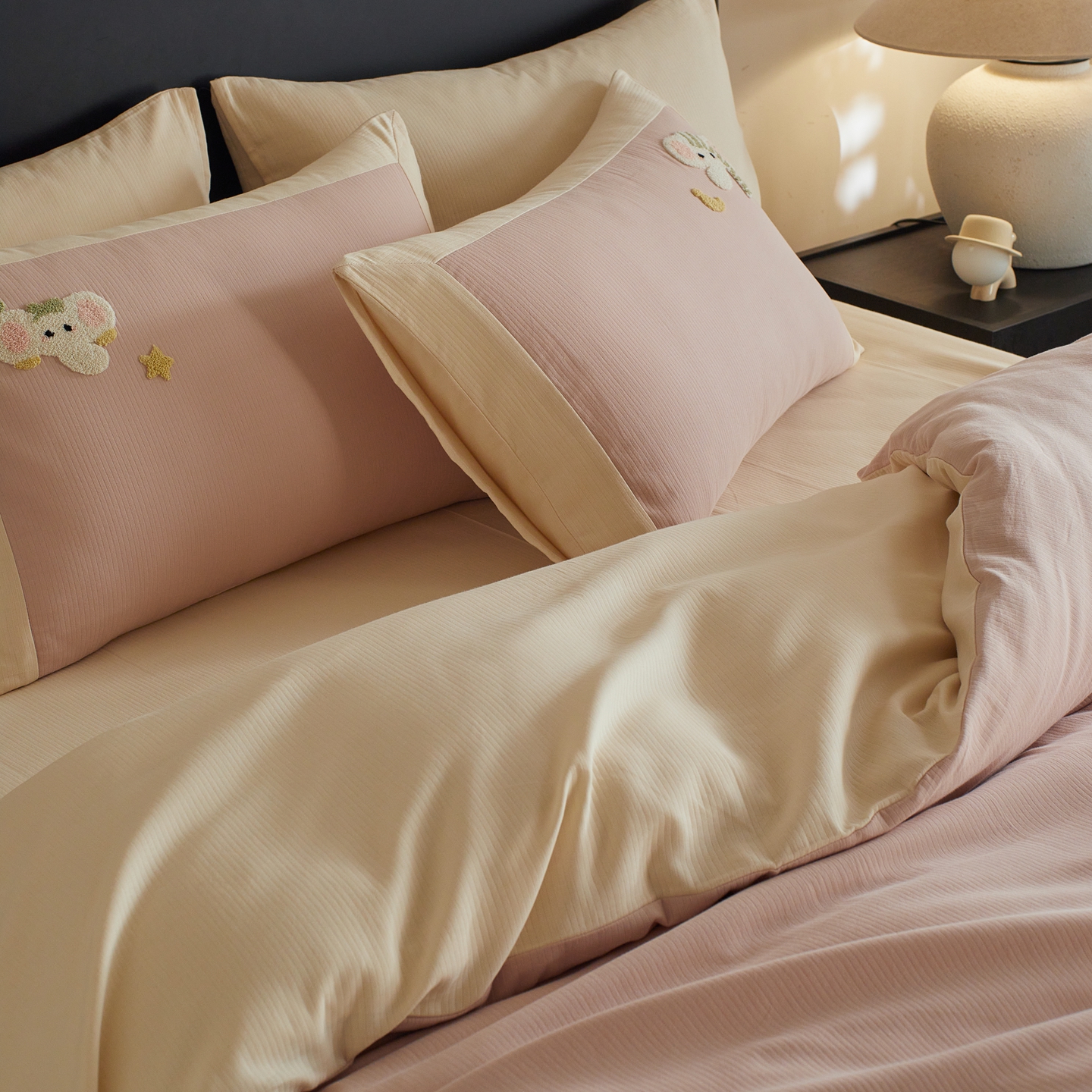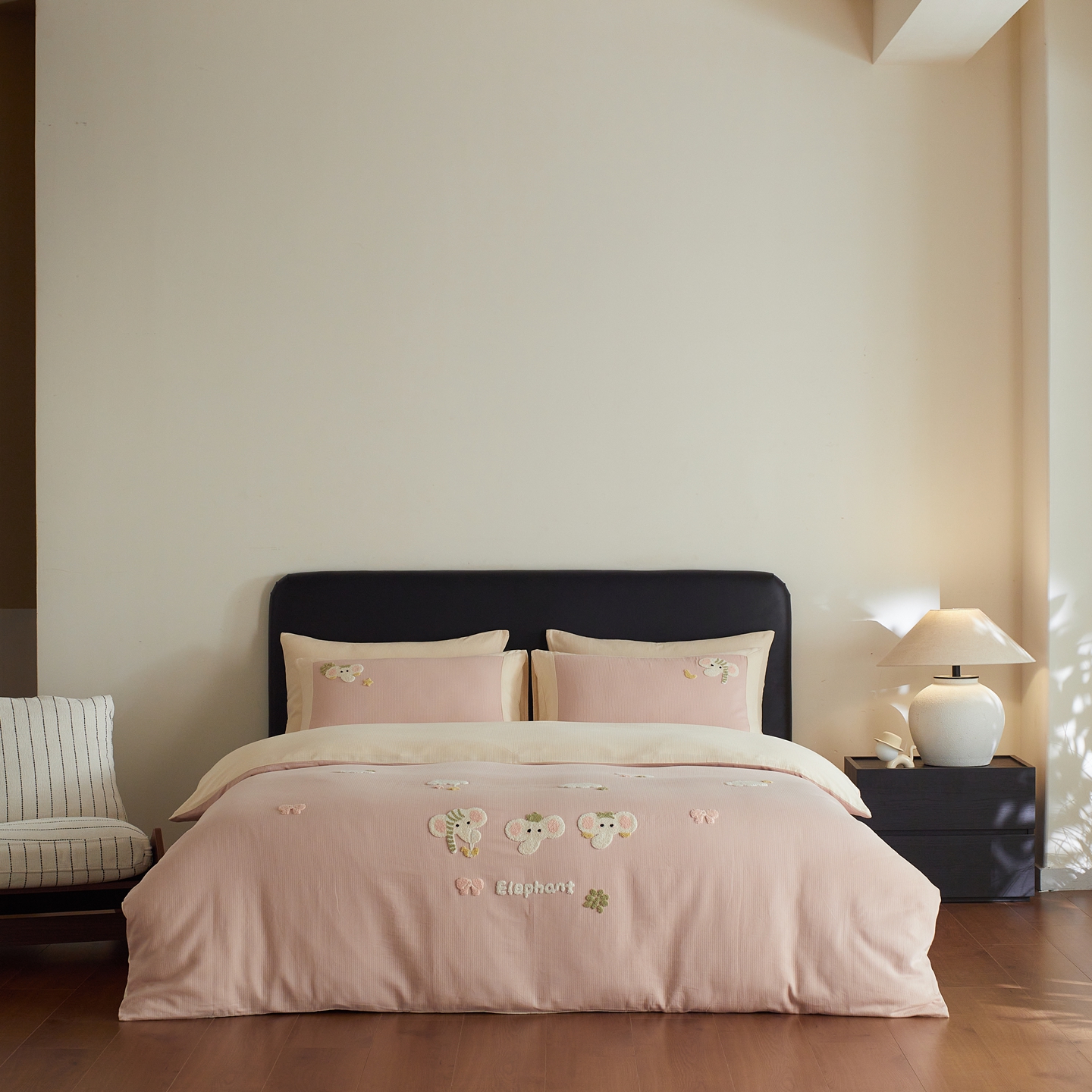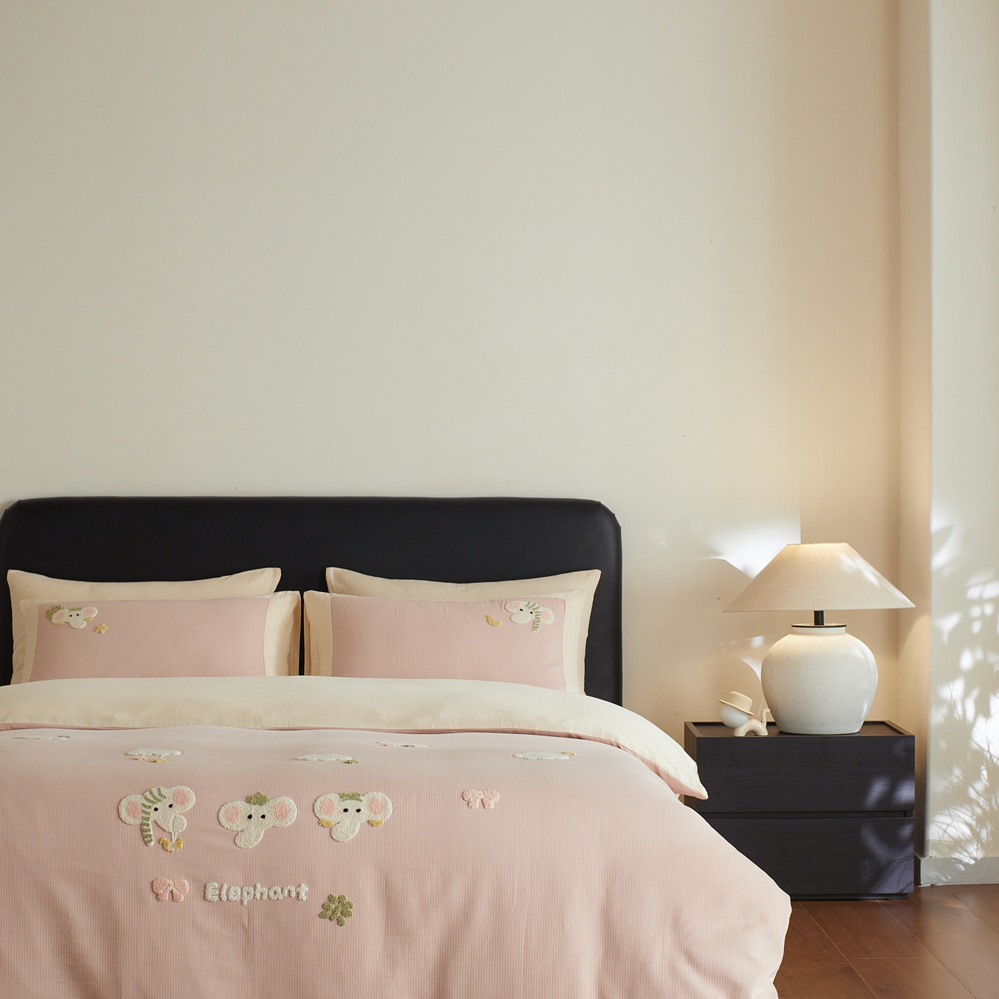 当前位置: 91家纺网 > 商品网购 > 床品套件 > 四件套 > 普通磨毛四件套 > 风向标家纺 2025新款透气软织提花磨毛卡通毛巾绣四件套-风格三 云朵小象