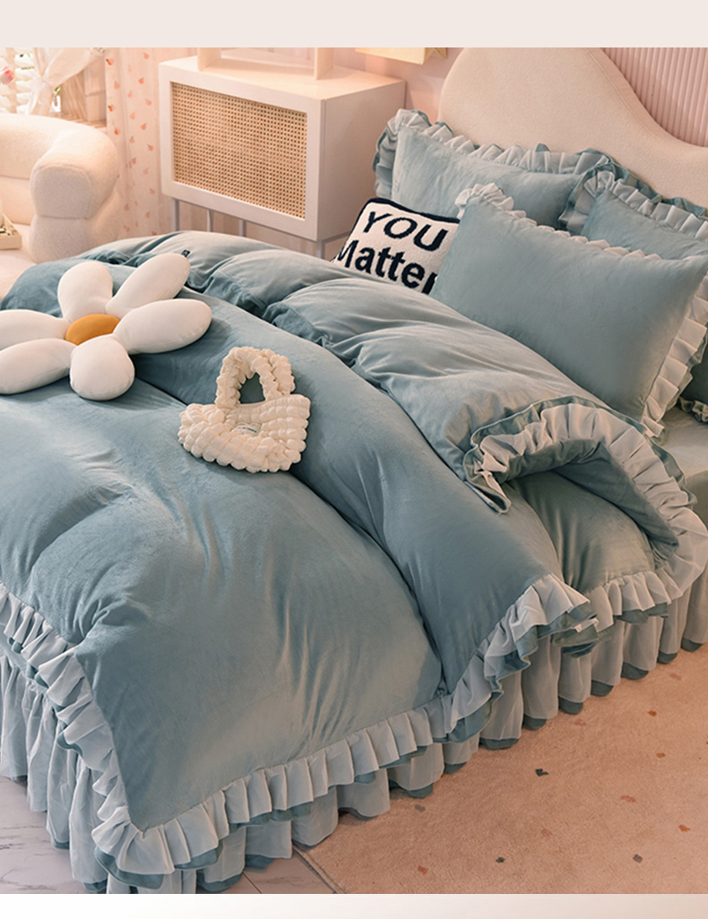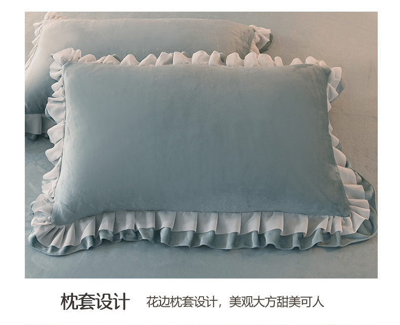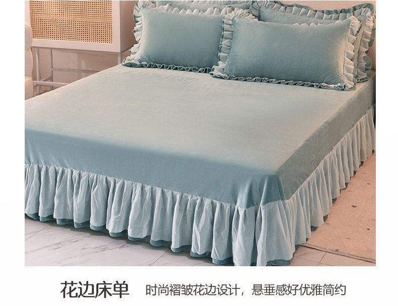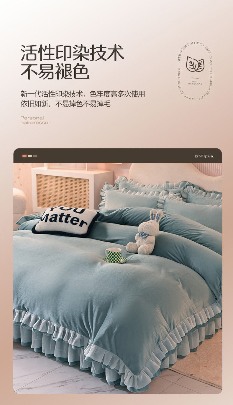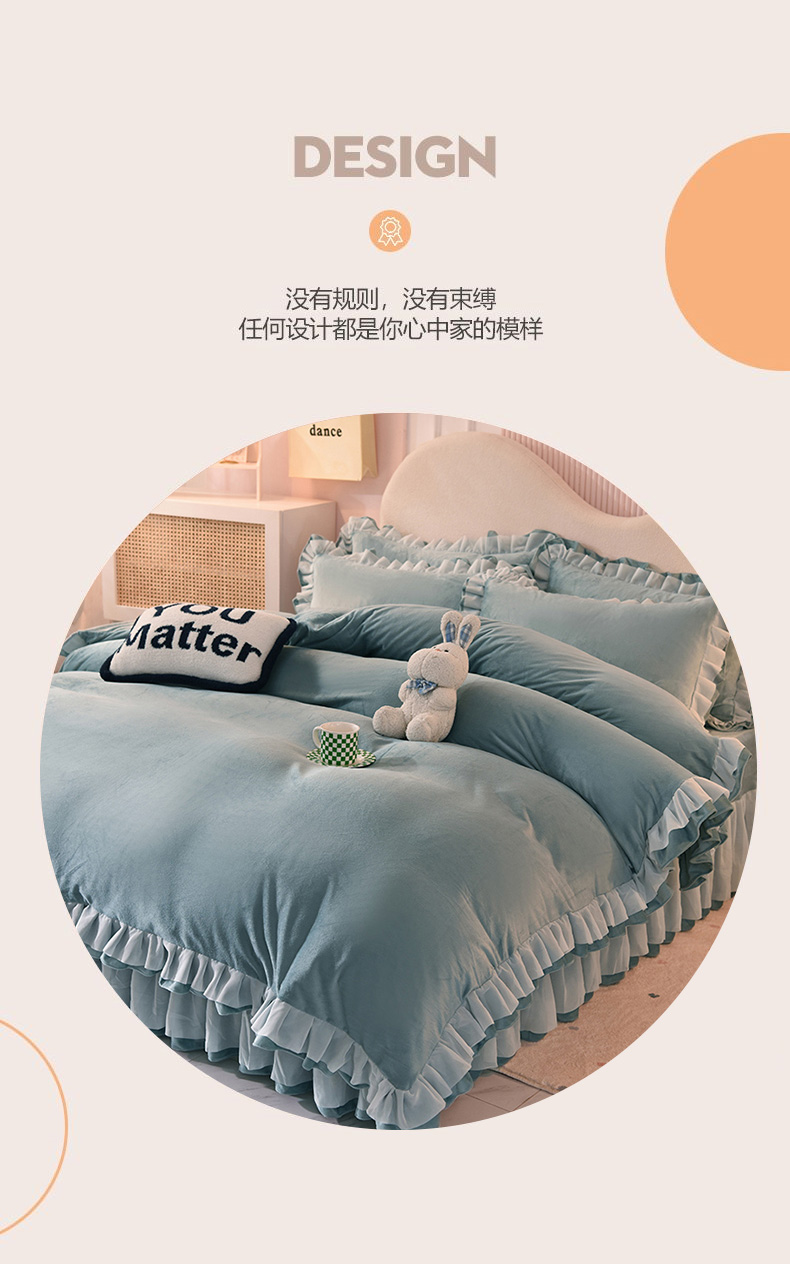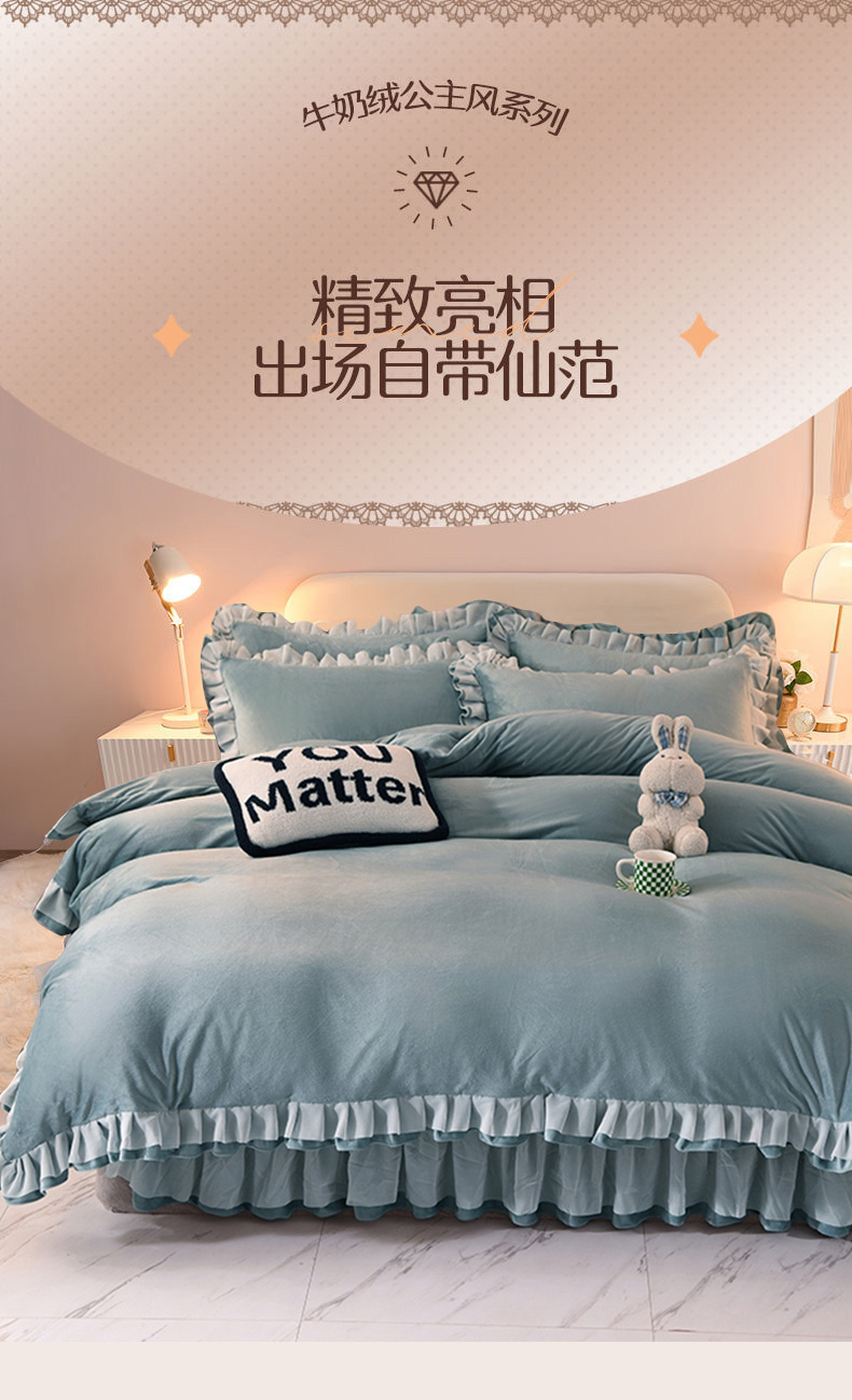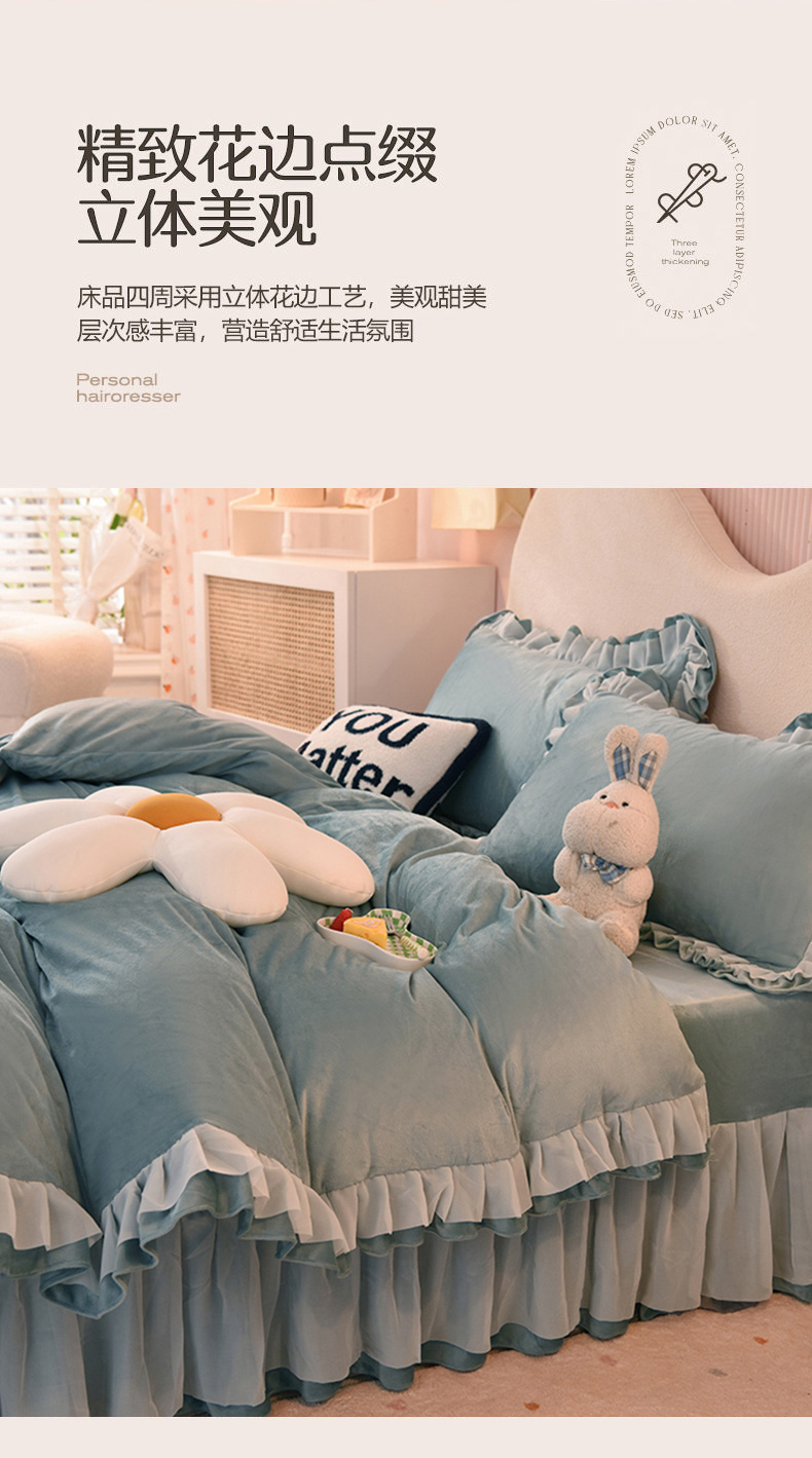商品名称:后庭寝室 2025新款韩式花边牛奶绒四件套-香香公主系列 香香公主-湖蓝
