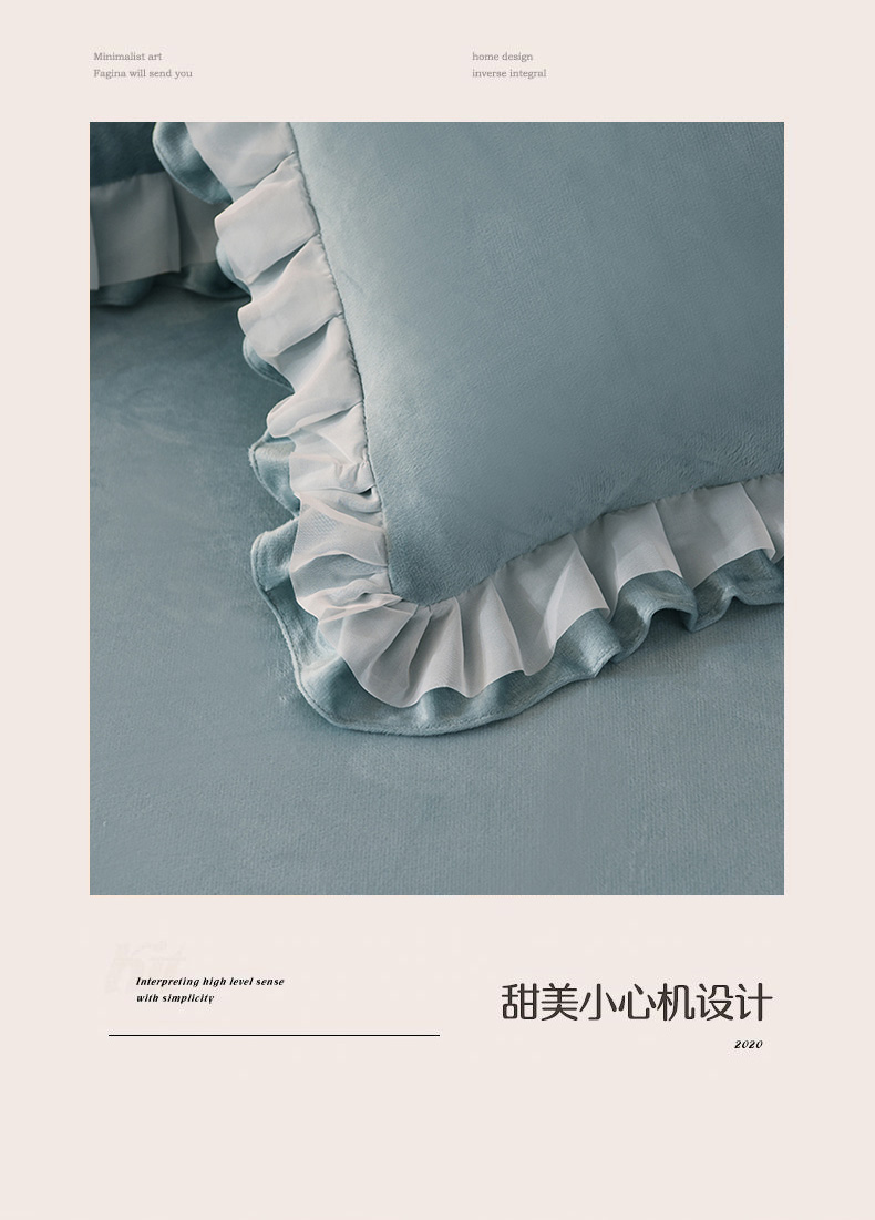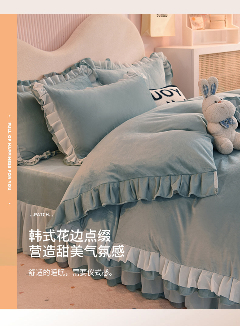 后庭寝室 2025新款韩式花边牛奶绒四件套-香香公主系列 香香公主-湖蓝