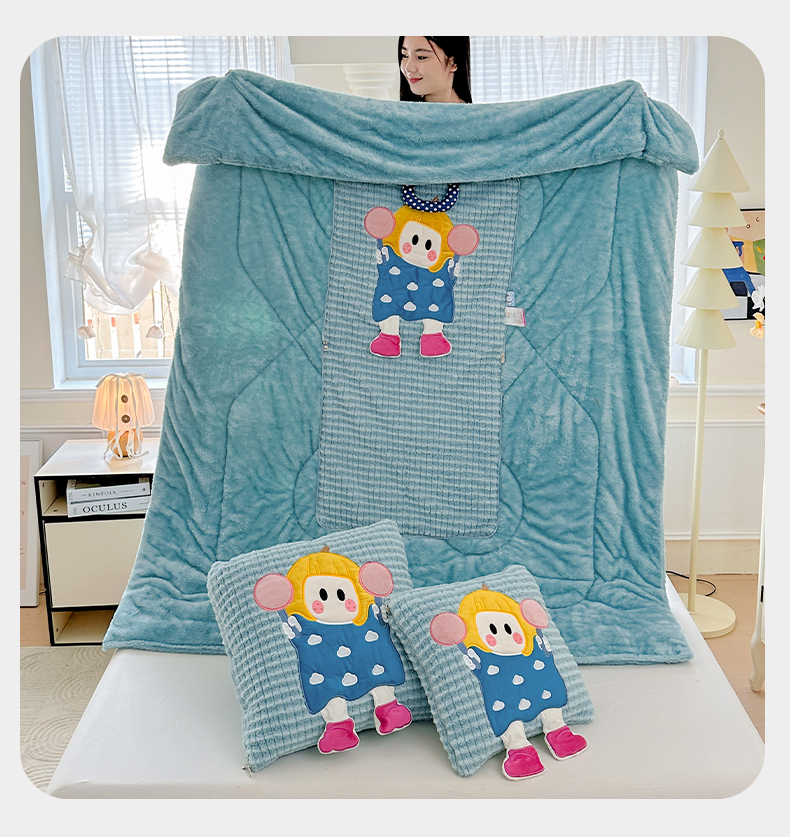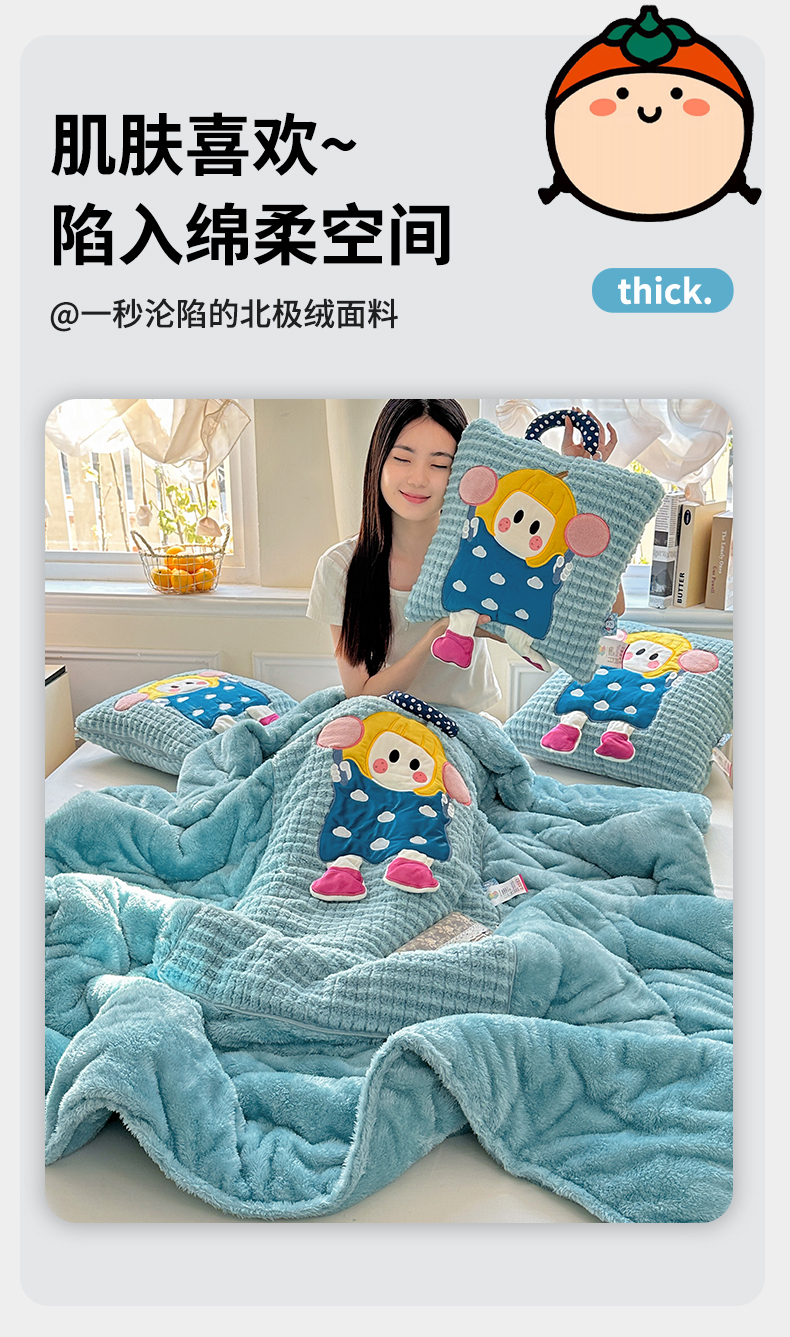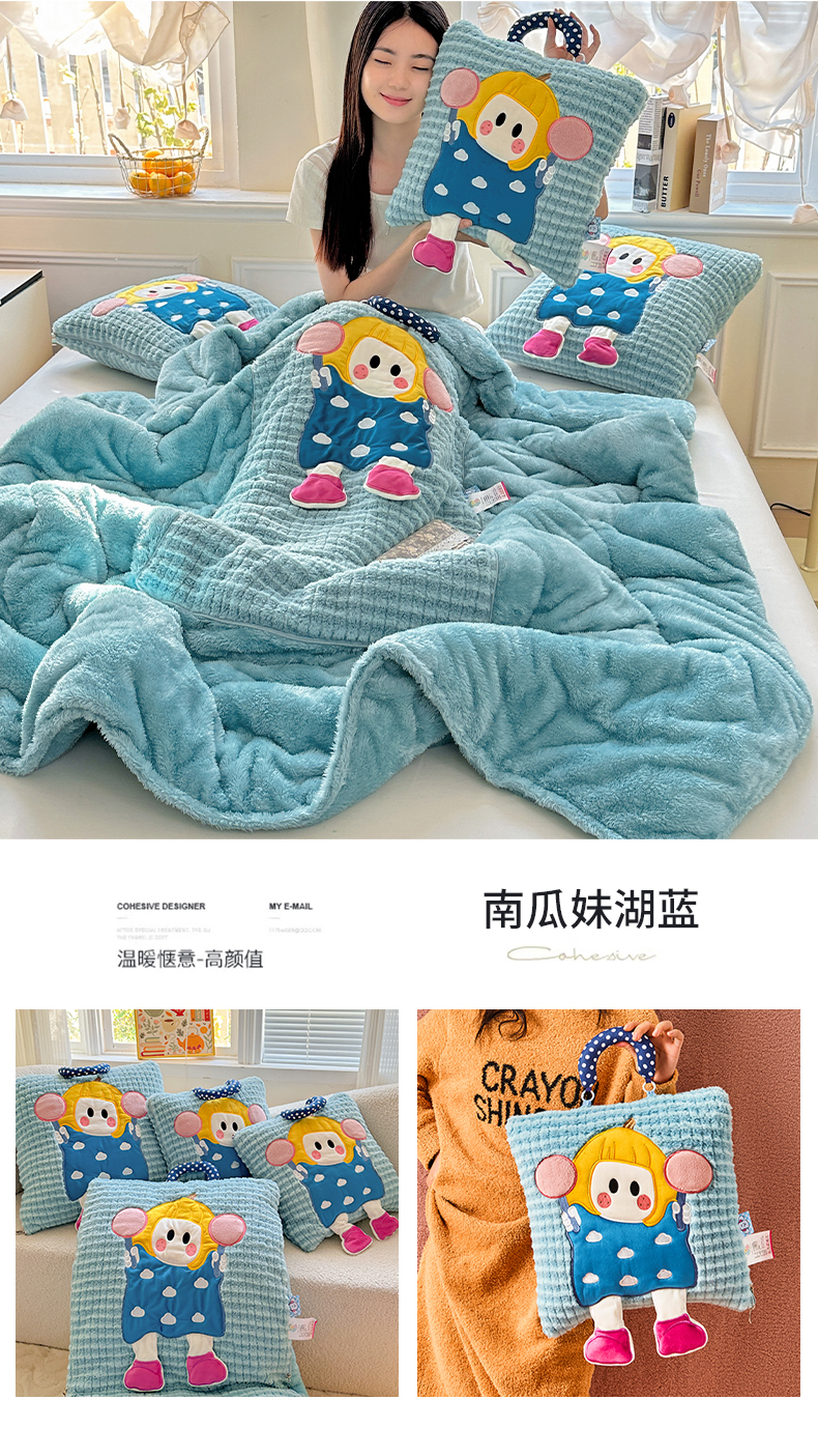 商品名称:古本家居 2025新款南瓜妹抱枕被 南瓜妹湖蓝