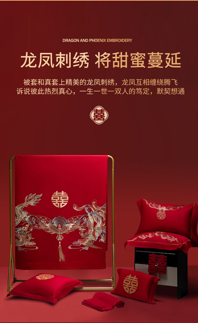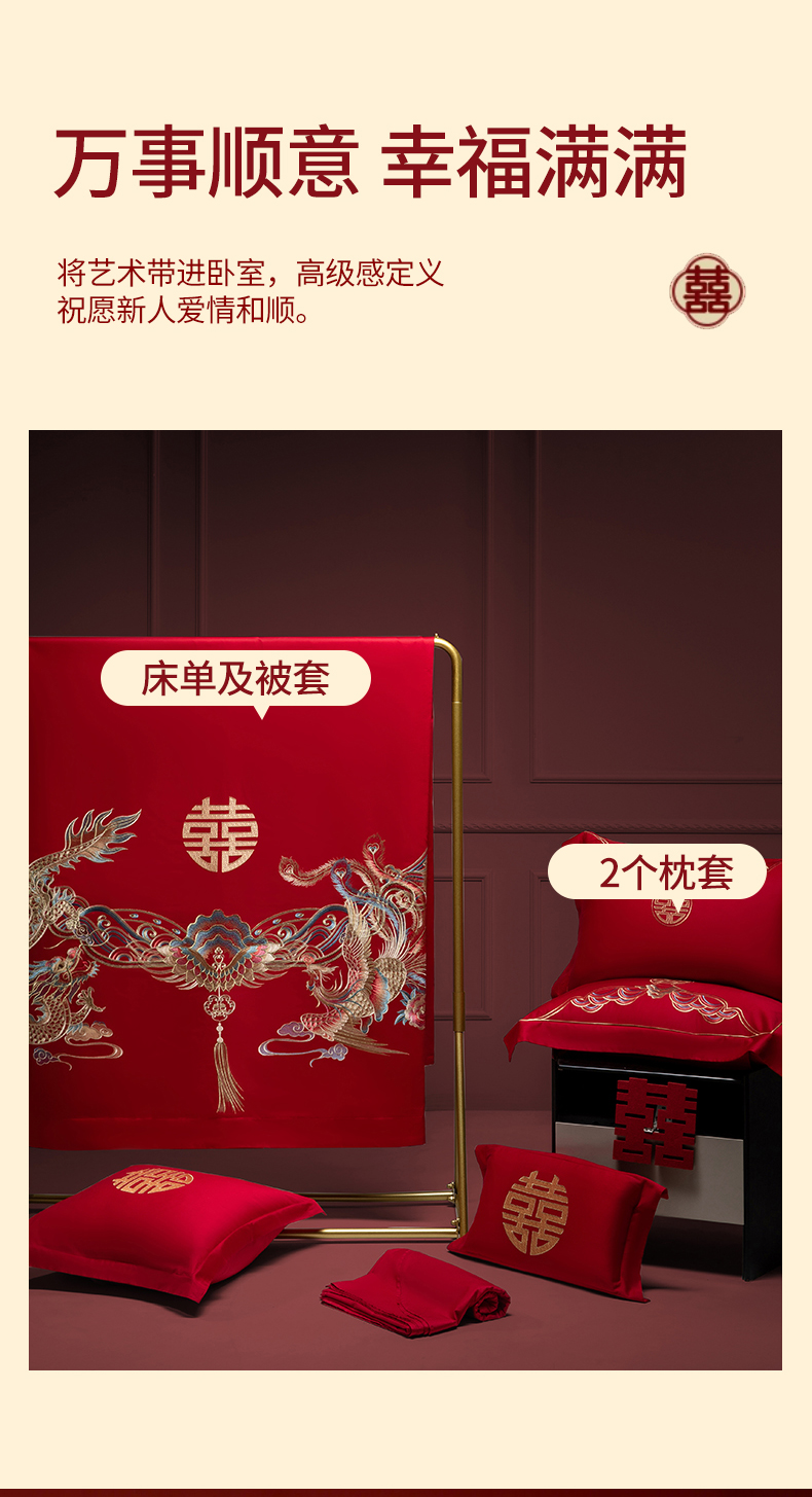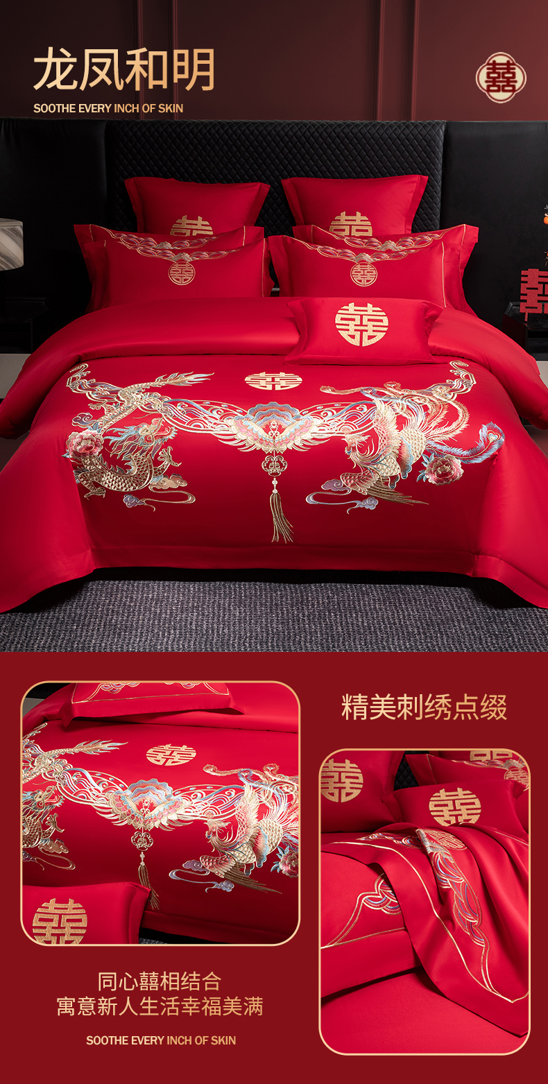 (总)欧乐蒂 2025冬季新品亲肤棉提花刺绣婚庆四件套,龙凤双喜,喜事花开