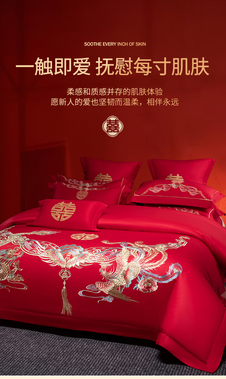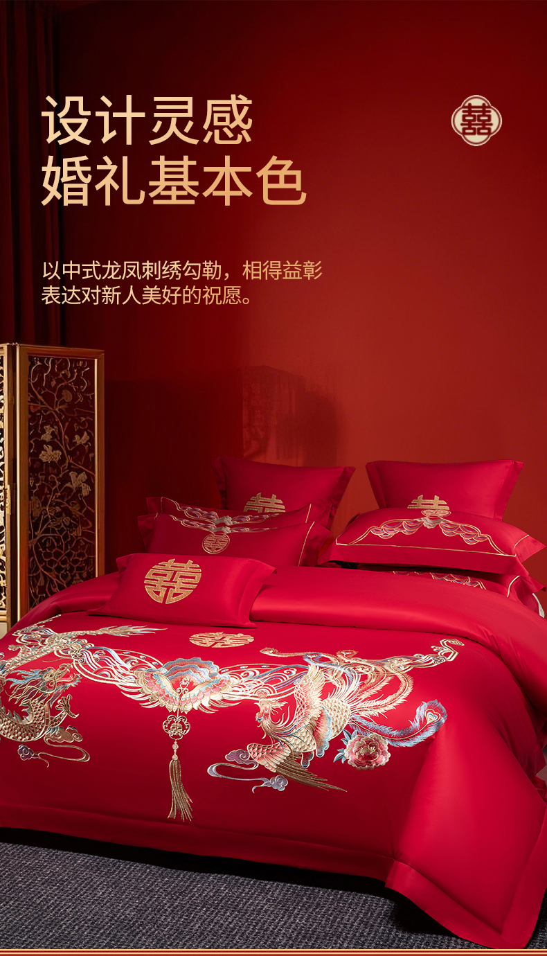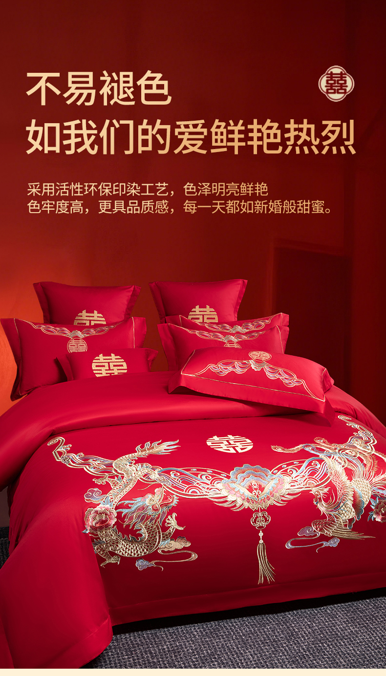 (总)欧乐蒂 2025冬季新品亲肤棉提花刺绣婚庆四件套,龙凤双喜,喜事花开