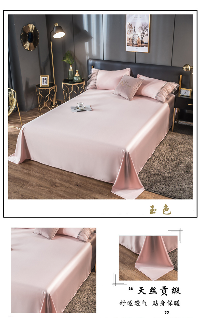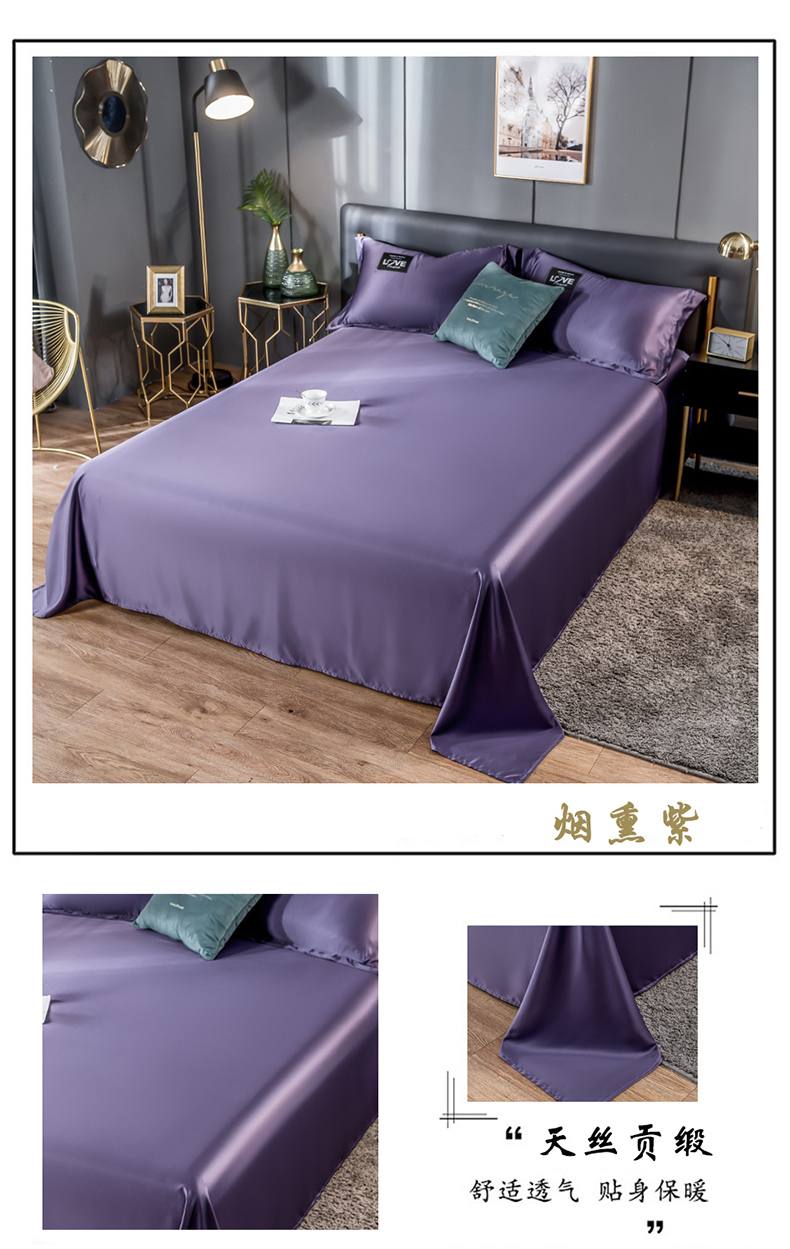 (总)丽莱美家纺 2026新款天丝冰丝床单,宾利蓝,纯白色,豆沙粉,豆沙色,灰色,酒红,孔雀蓝,米白,墨绿色,浅紫色,水兰,天蓝,香槟金,香槟色,烟熏紫,玉色