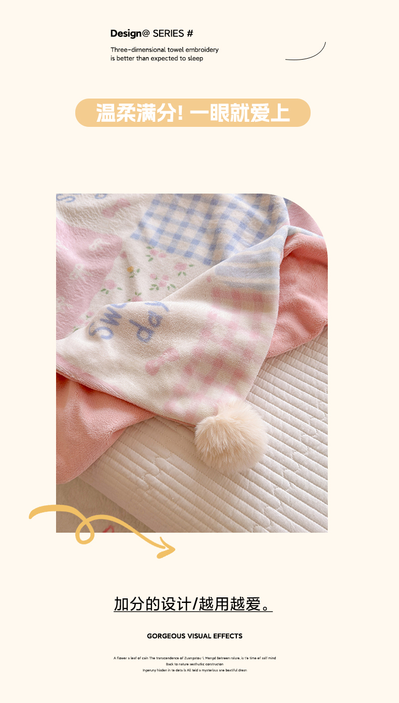 商品名称:罗亿家纺 2025新款高克重(200g)牛奶绒韩系毛球办公室盖毯多功能盖毯被套毛毯两用(小红书推荐) 萱花