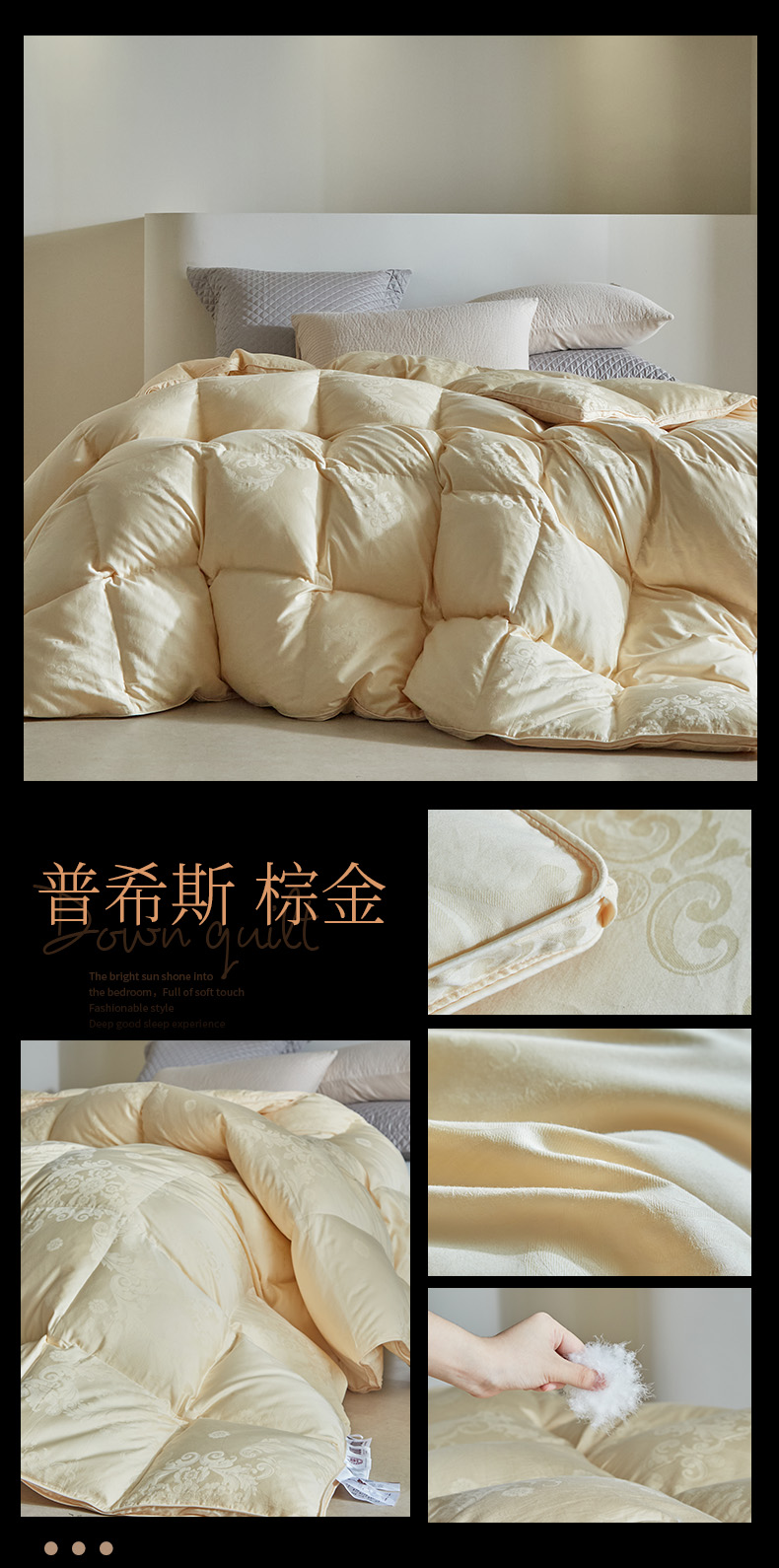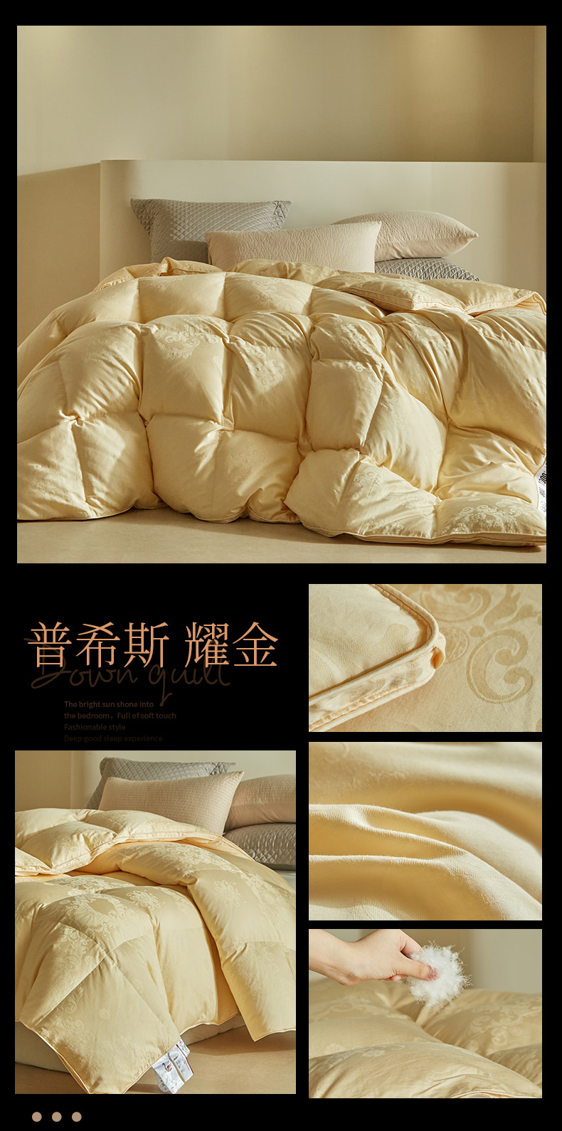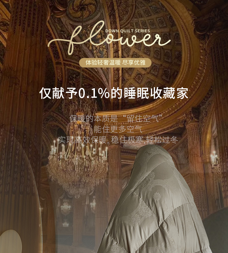 (总)暖羽屋羽绒馆 2025新款白鹅绒丝被芯 羽绒丝被 羽毛被子 婚庆羽绒被 双人加厚冬被,恒运莱 金-角度一,恒运莱 金-角度二