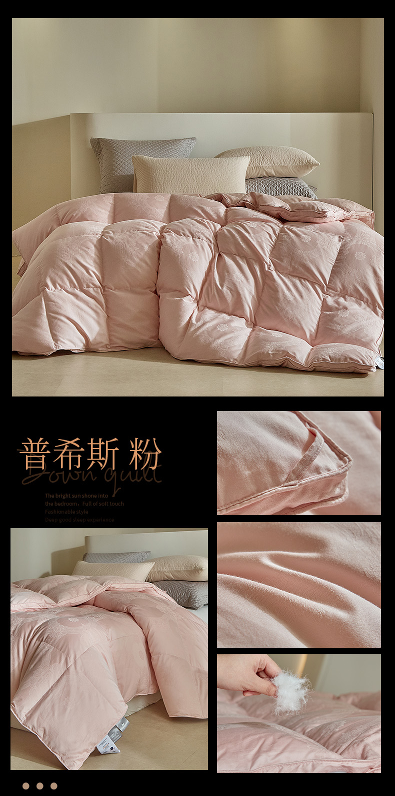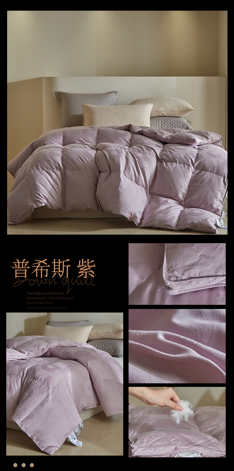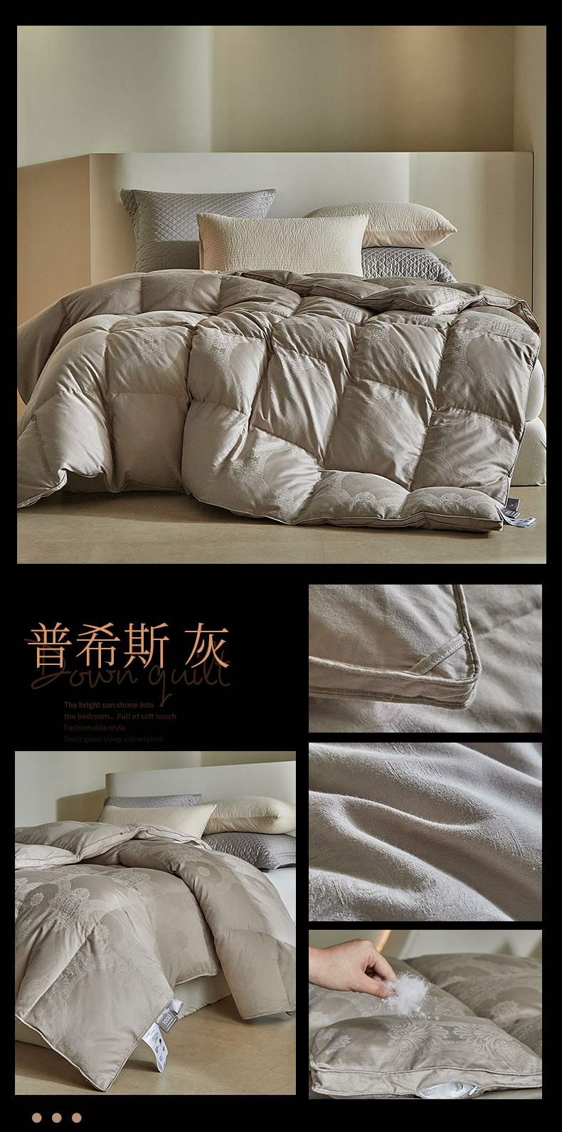 (总)暖羽屋羽绒馆 2025新款白鹅绒丝被芯 羽绒丝被 羽毛被子 婚庆羽绒被 双人加厚冬被,恒运莱 金-角度一,恒运莱 金-角度二