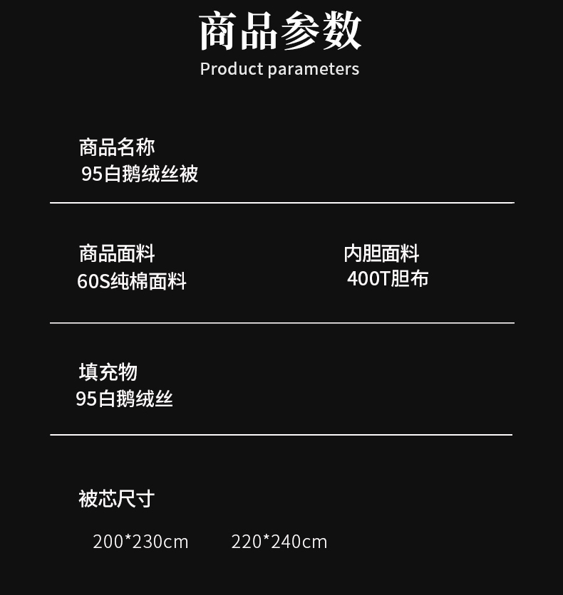 白鹅绒丝 200-230 填充1100克 春秋被