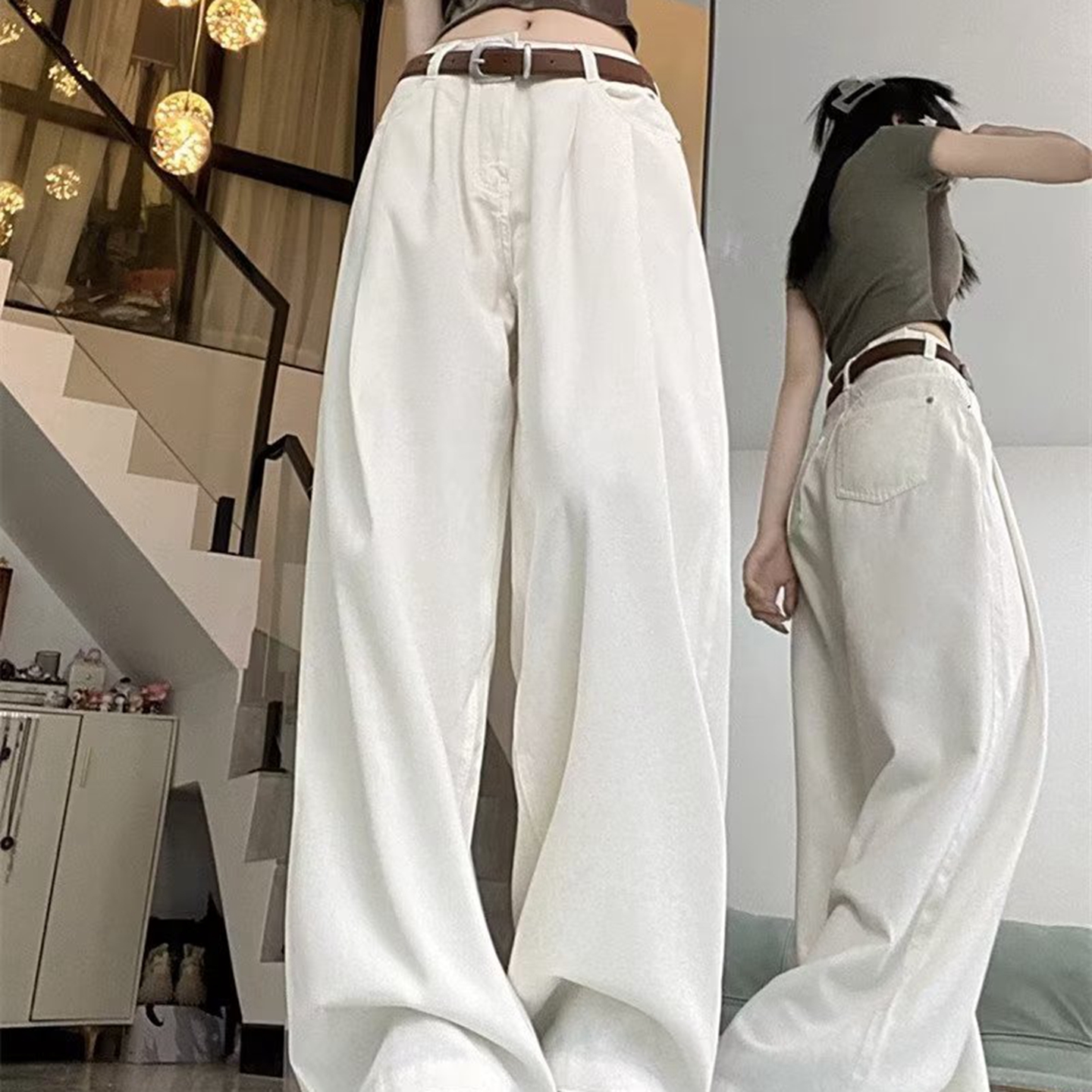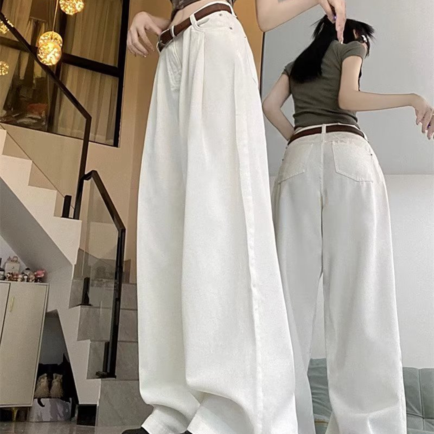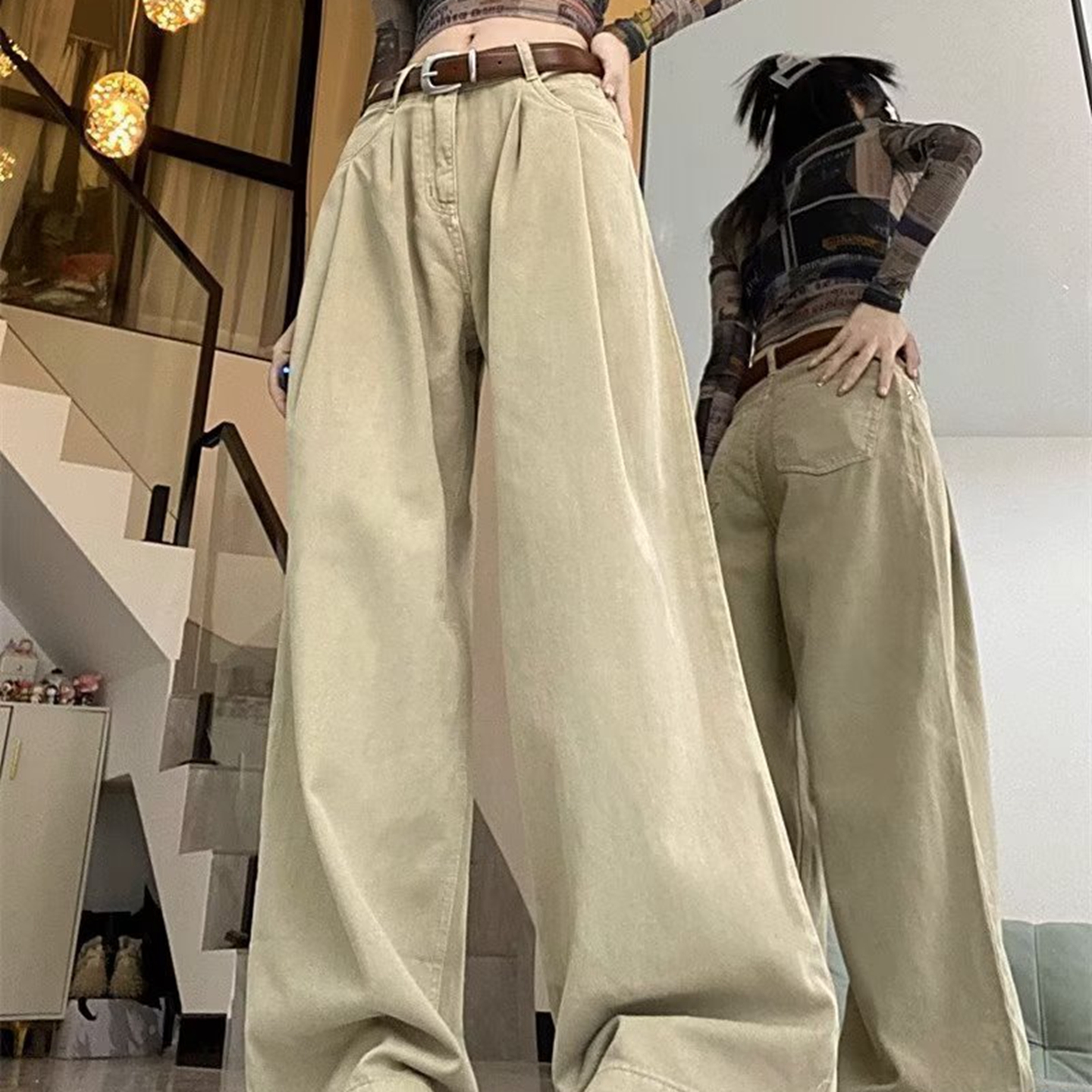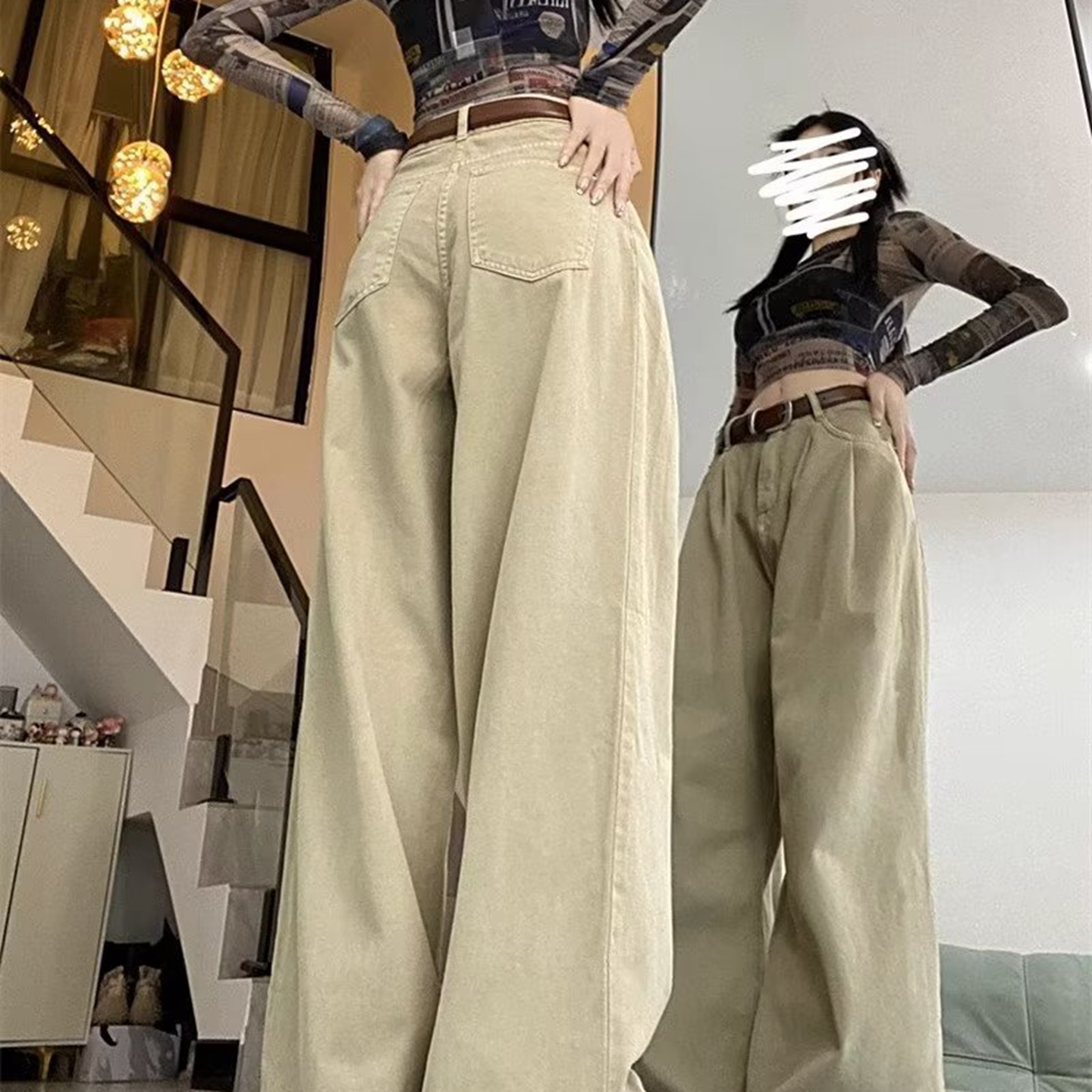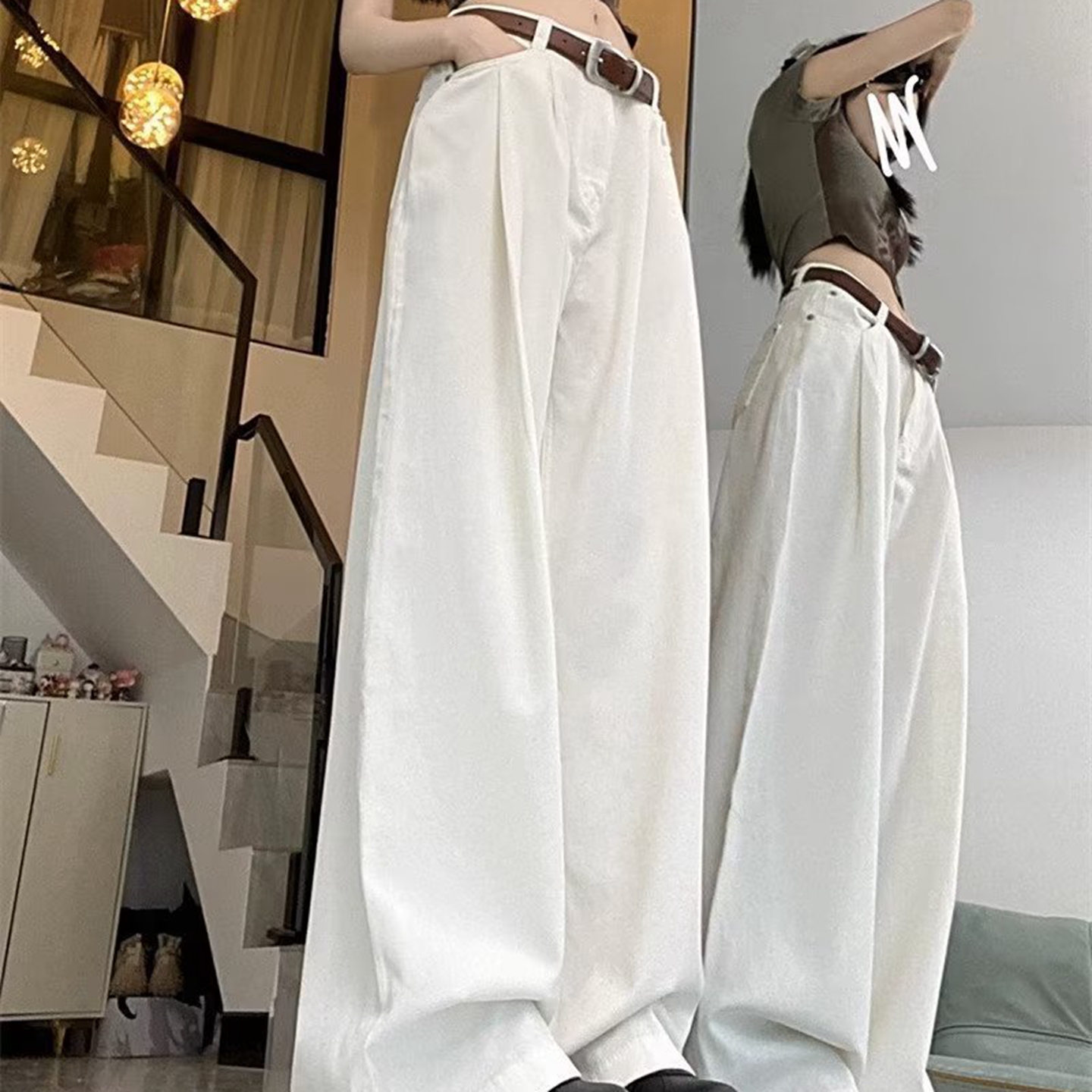 商品名称:(总)洛兰沙家居馆【只代发】【只代发】 2025新款白色垂感直筒休闲裤女秋季2023新款美式工装裤宽松阔腿裤拖地牛仔裤6