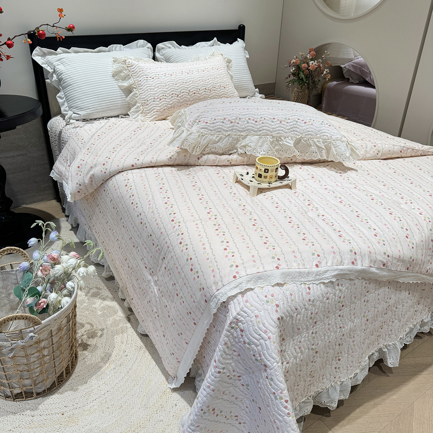(总)奈萝家纺 2025新款全棉纯棉床盖三件套可配同款四季被同款被套,草莓酱,芳草恋,蝴蝶结,极光之星,沫婉,沐辰花灰,沐辰花绿,千野绿,千野紫,清幽粉,薇语梦,夏梦,小小爱心,小小花园,心悦,樱桃可可,稚嫩蔷薇,紫悦