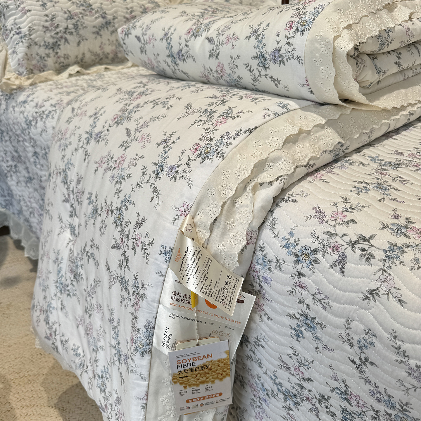 商品名称:奈萝家纺 2025新款全棉蕾丝花边被套春秋被床盖四件套床盖三件套 芳草恋