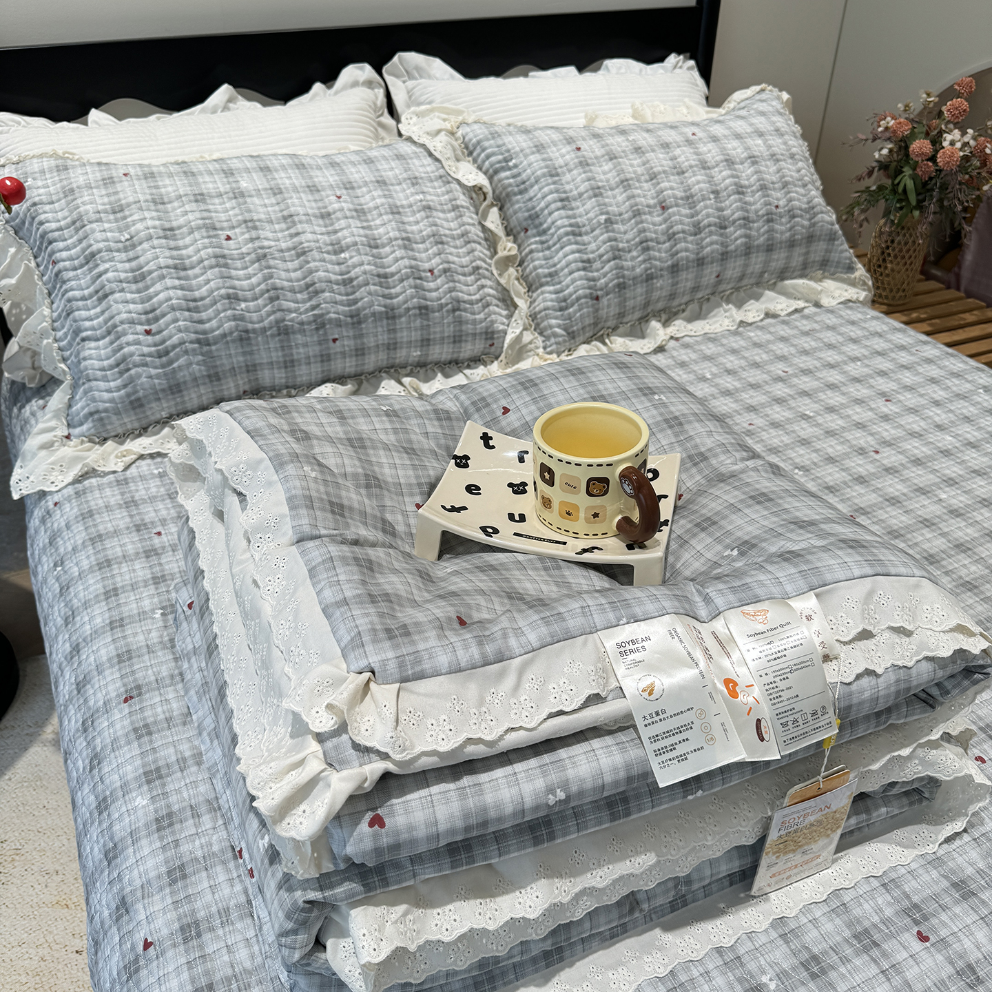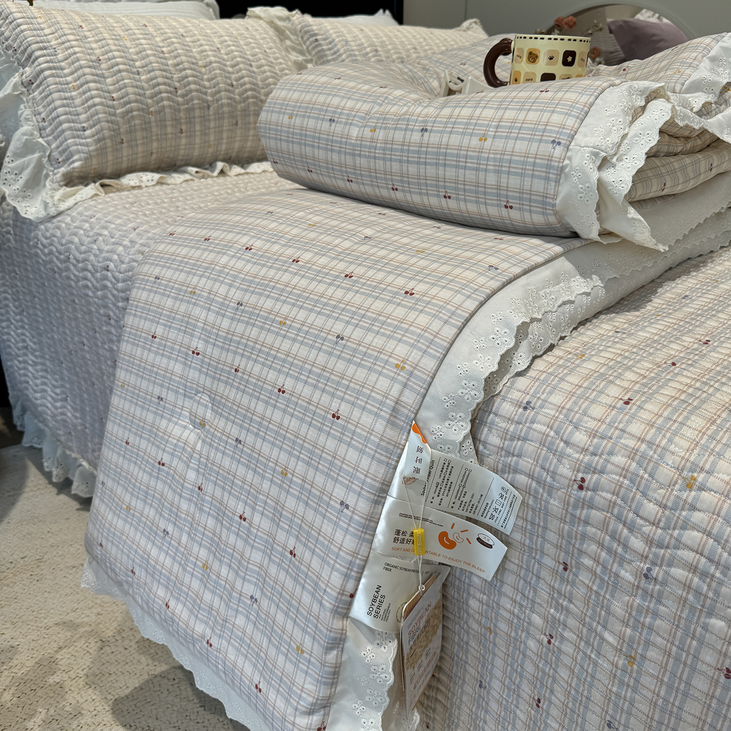 (总)奈萝家纺 2025春夏新款全棉纯棉蕾丝花边款夏被夏凉被空调被,呆呆熊,花语绿,花语紫,柠檬,蔷薇,西瓜兔,夏蓝,夏梦,夏之语,小花熊,樱花,组合图仅供展示