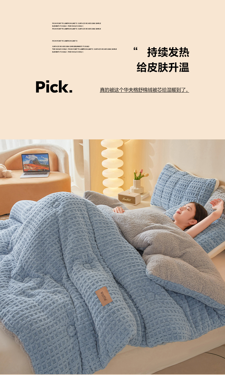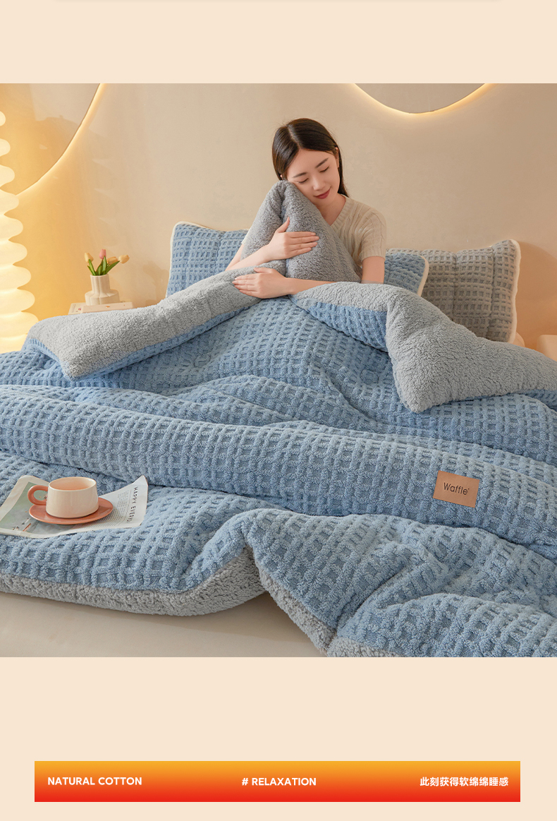 (总)美梦里 2025新款华夫格舒棉绒冬被被子被芯