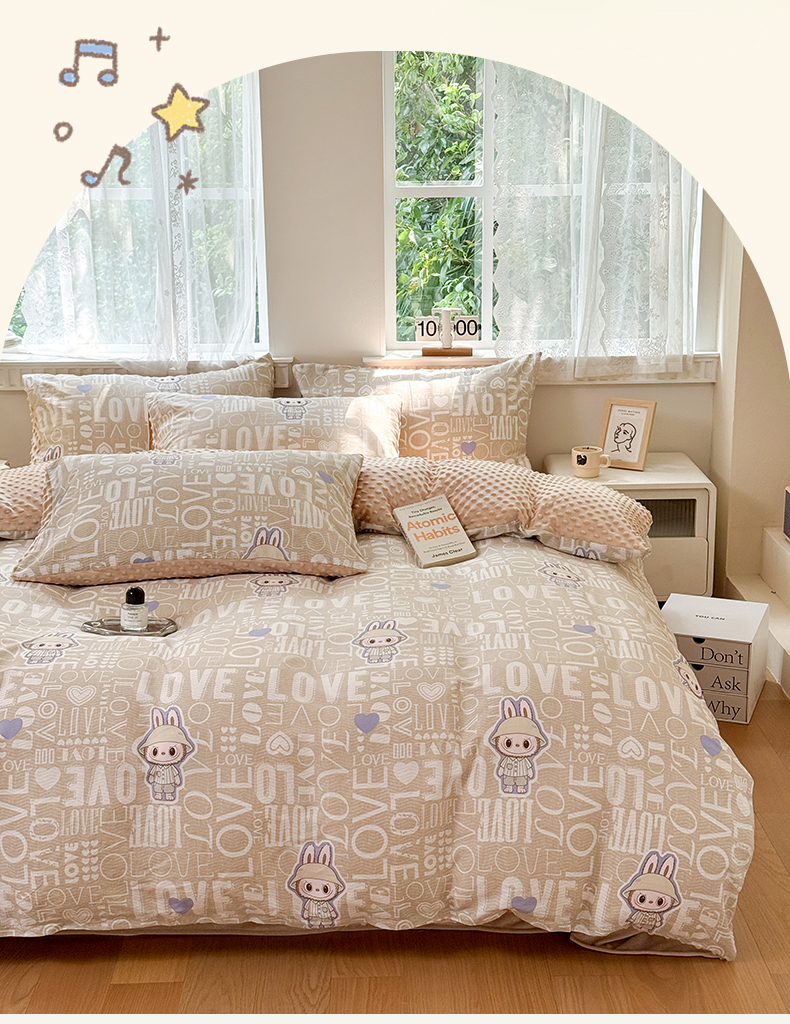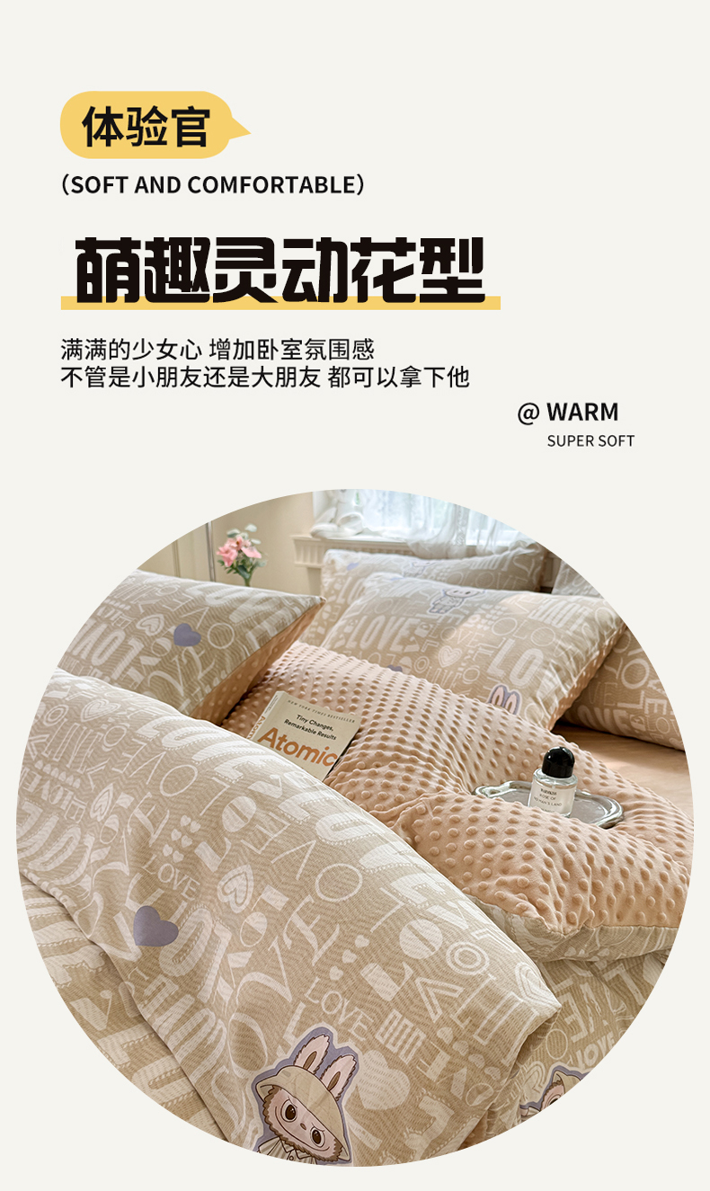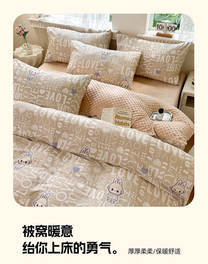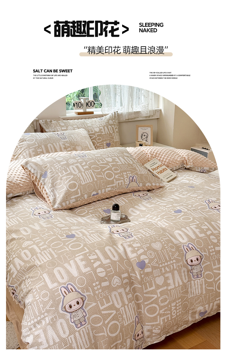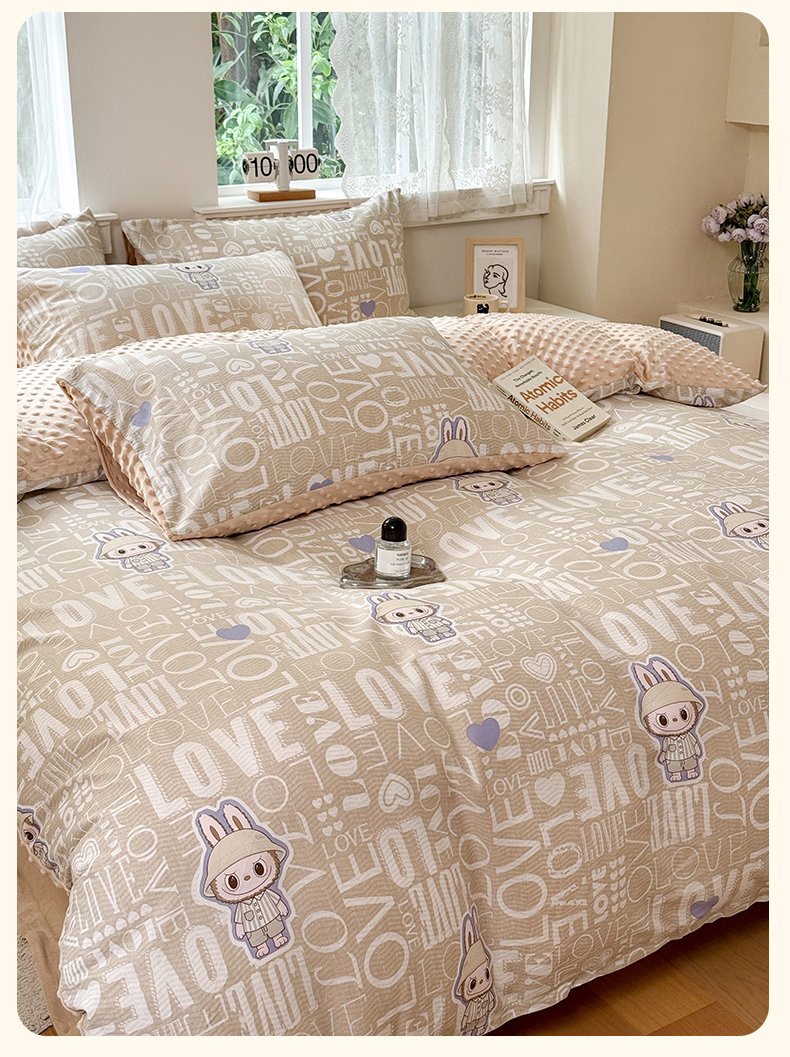 当前位置: 91家纺网 > 商品网购 > 床品套件 > 四件套 > 牛奶绒四件套 > 雯雨家纺 2025新款ab版全棉豆豆绒婴儿绒牛奶绒四件套 拉布兔兔