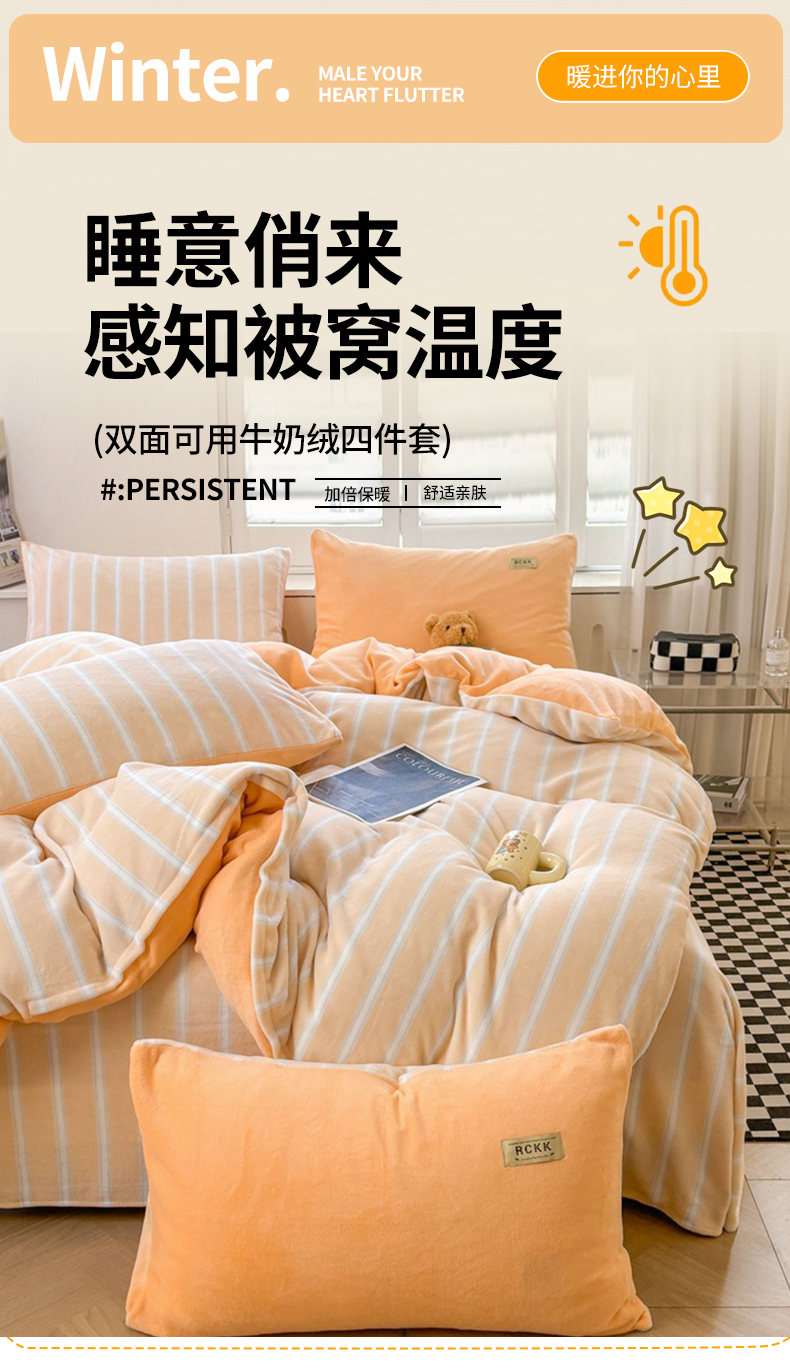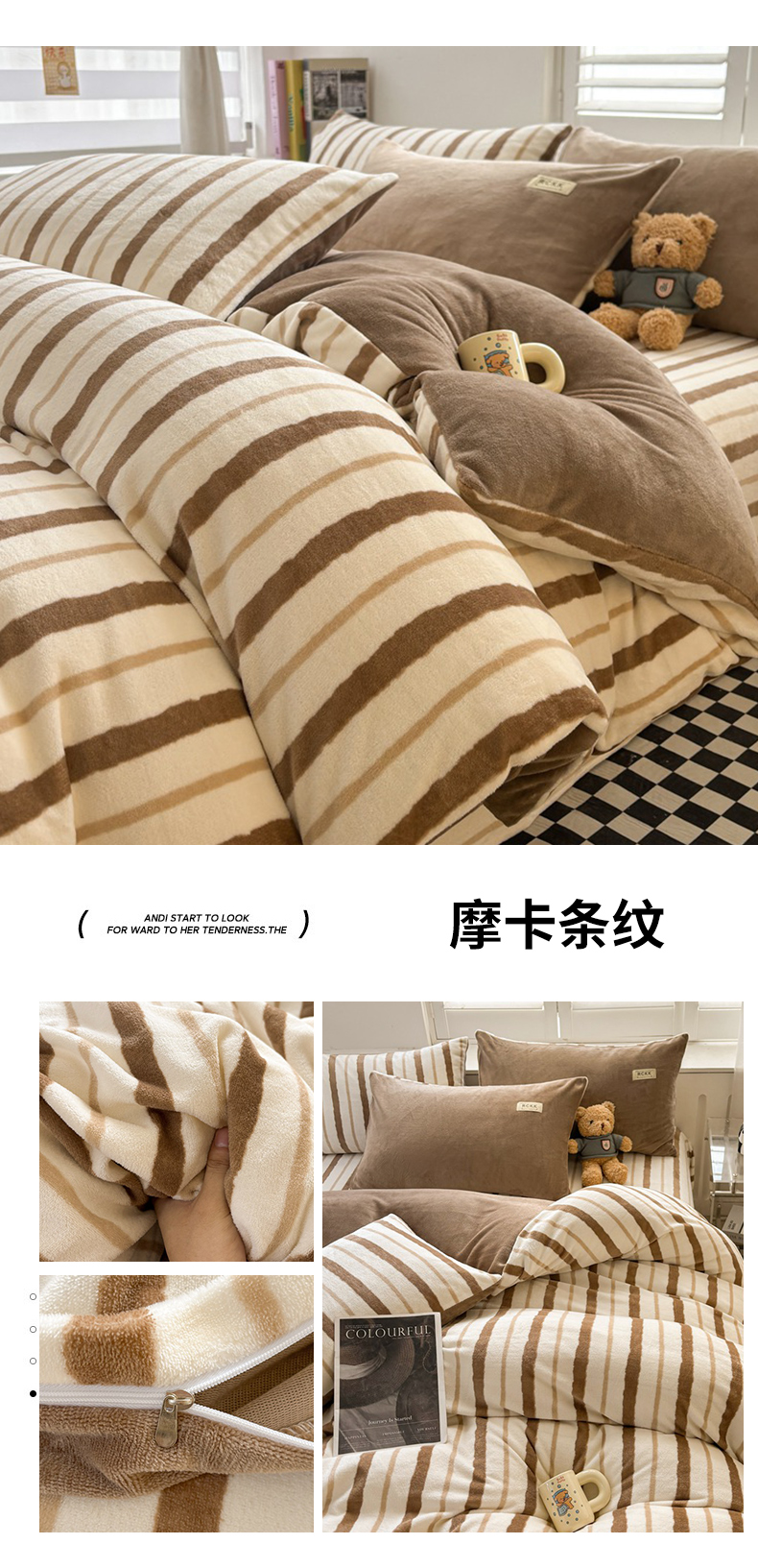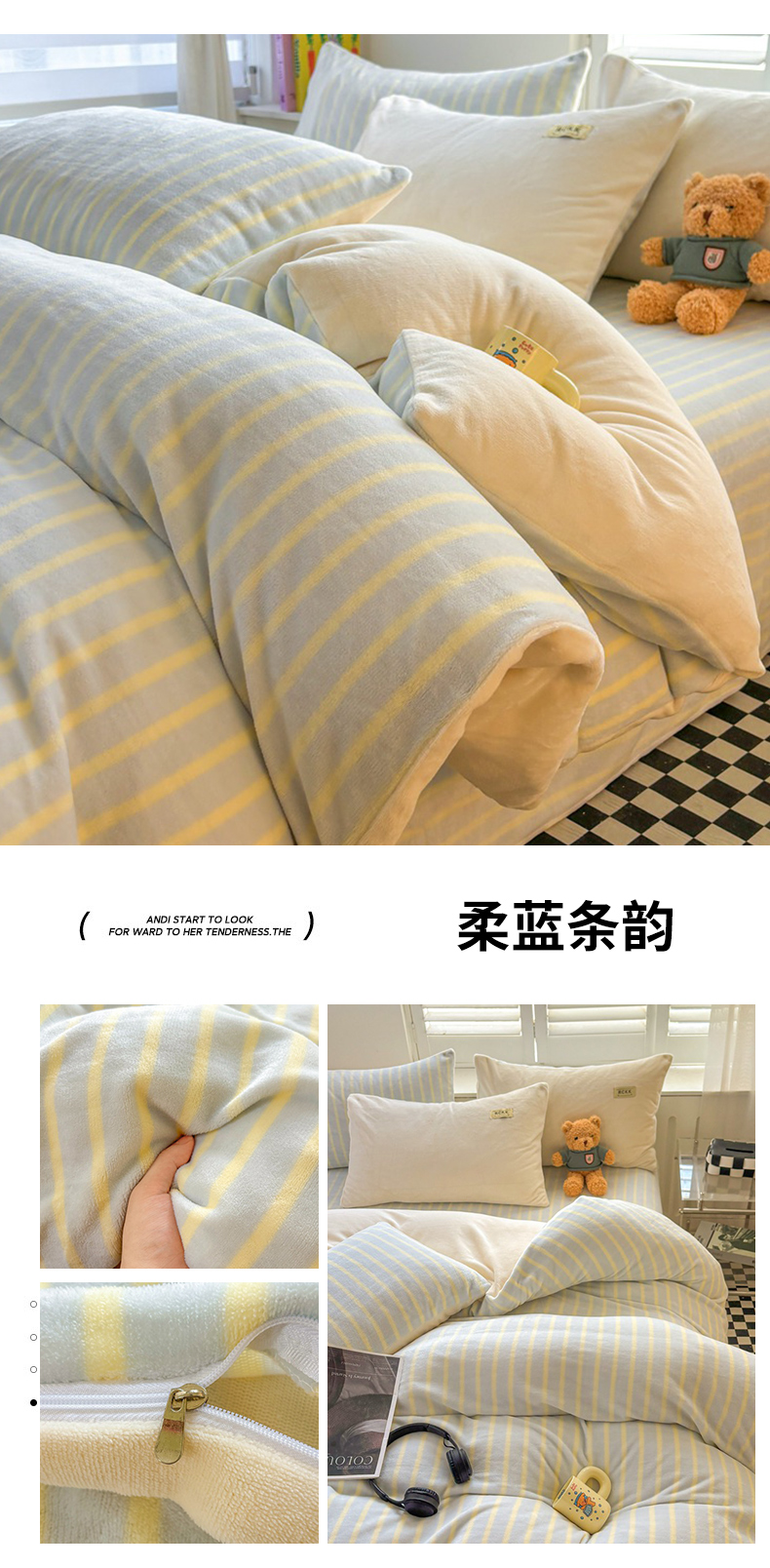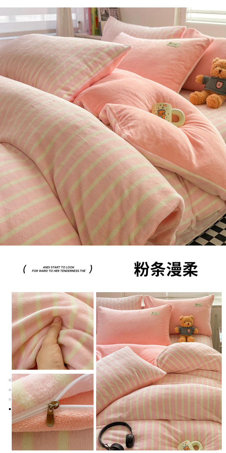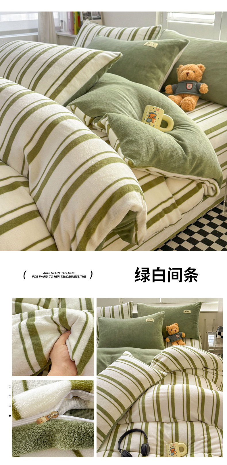 (总)(含买家秀)2025秋冬新款素色条纹牛奶绒四件套秋冬爆款加厚冬季保暖四件套简约风床上用品,粉白间条,粉条漫柔,复古格影,蓝条序梦,绿白间条,蓝格轻语,摩卡条纹,奶咖小格,暖橙映画,柔蓝条韵