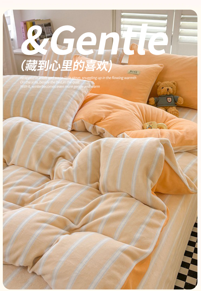 (含买家秀)2025新款简约条纹牛奶绒四件套纯色冬季加厚保暖床单被套枕套双面可用床上用品