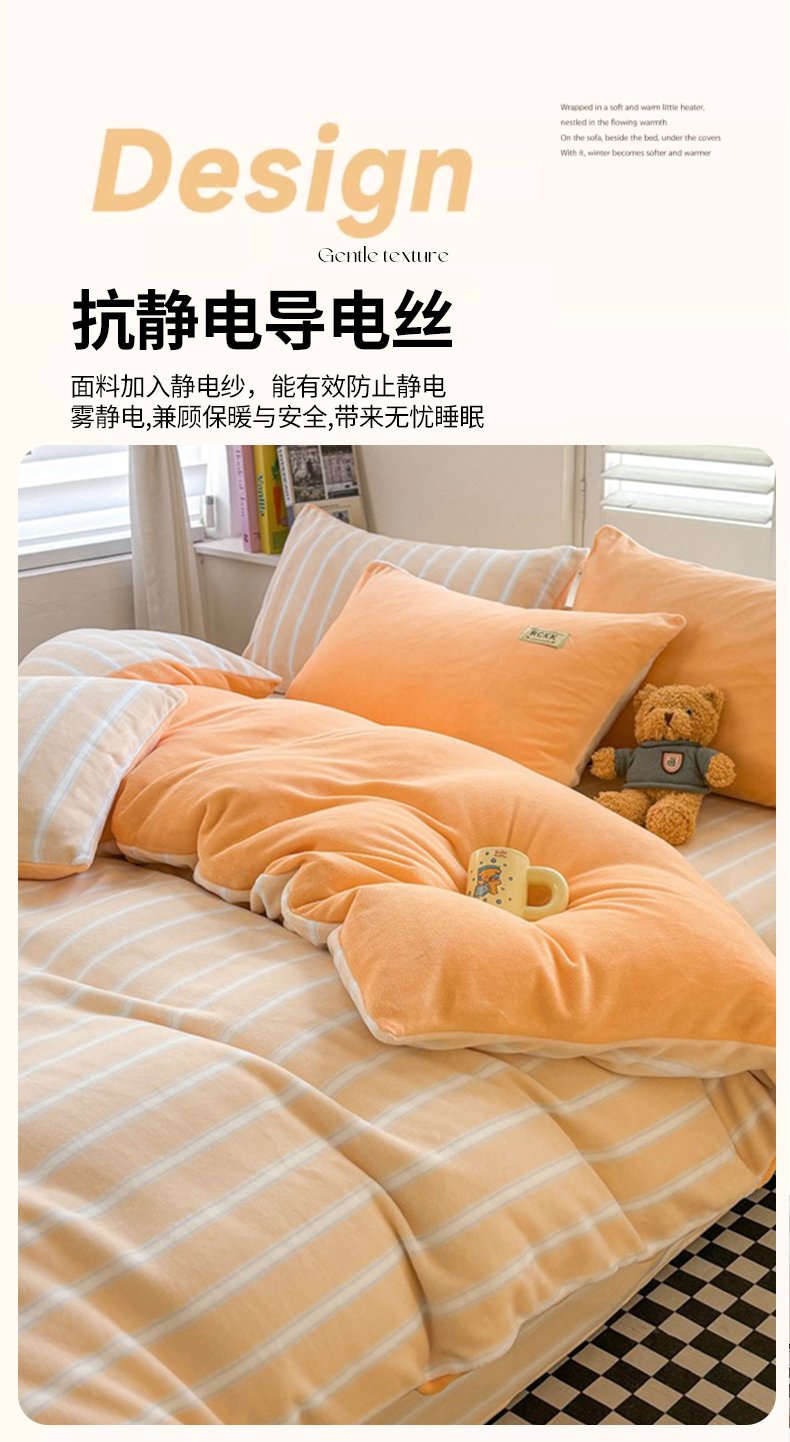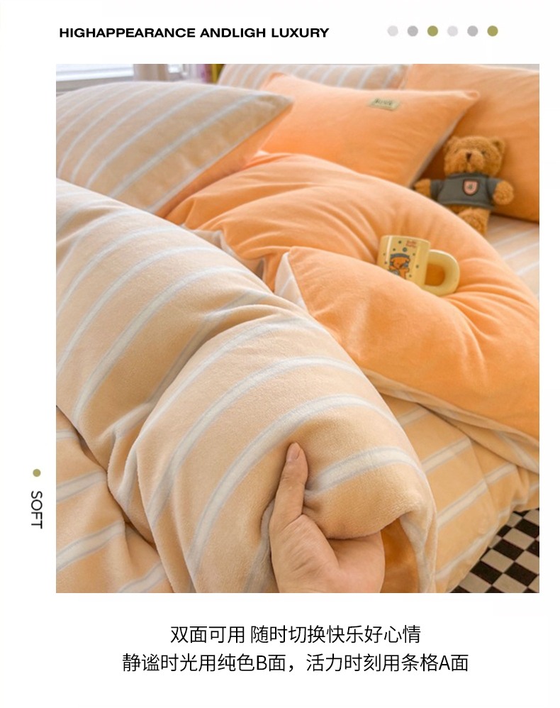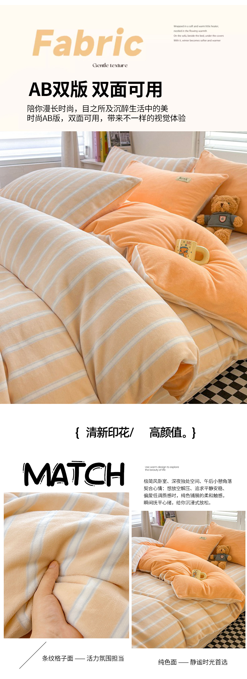 商品名称:(含买家秀)2025新款简约条纹牛奶绒四件套纯色冬季加厚保暖床单被套枕套双面可用床上用品