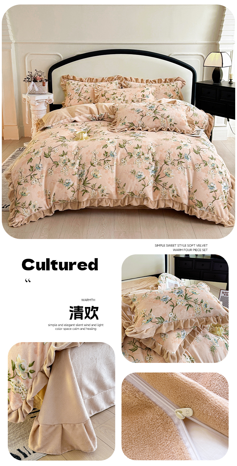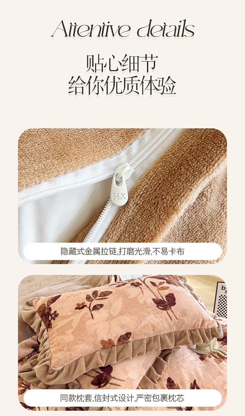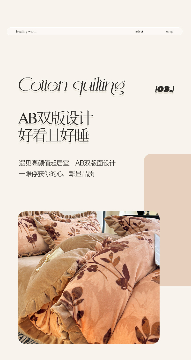 商品名称:绘萱家居 2025新款爆款高密消光双层花边牛奶绒四件套印花 美拉德