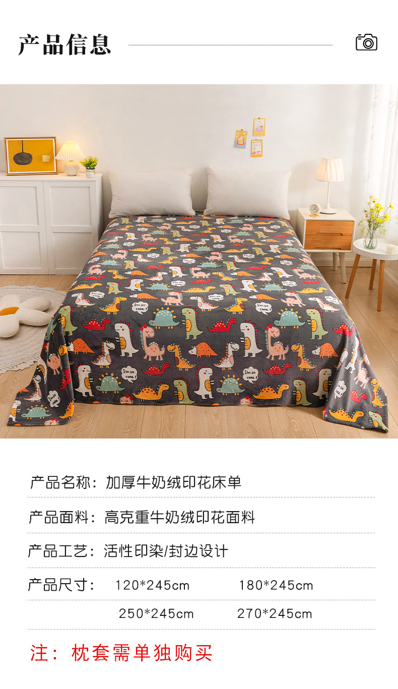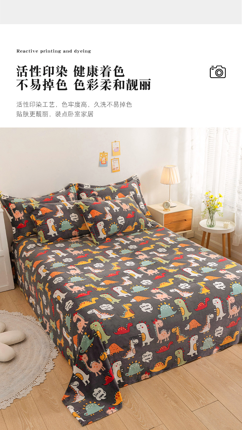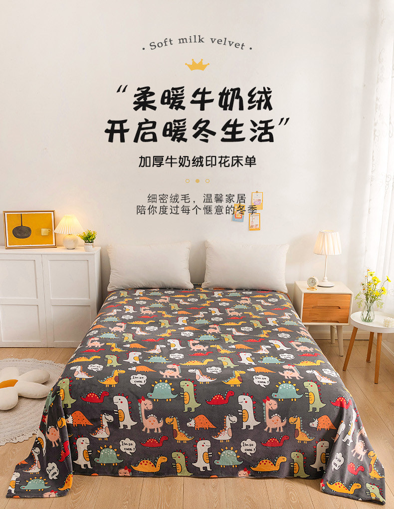 商品名称:金盛纺 2025新款高克重牛奶绒印花系列单床单(可定制) 恐龙王国