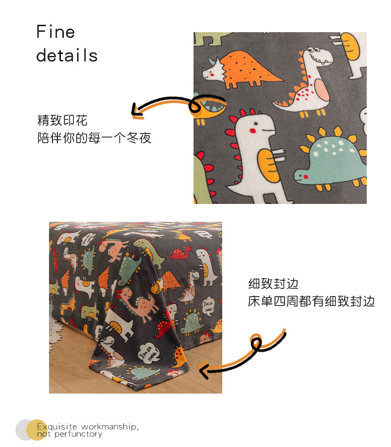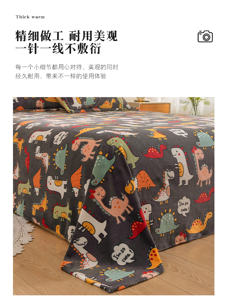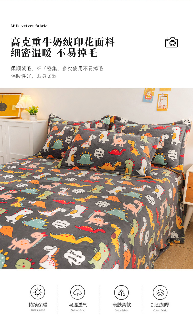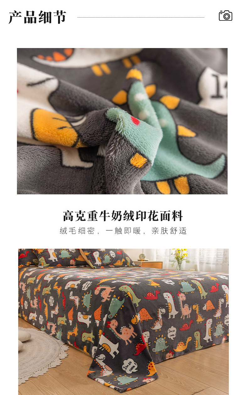 商品名称:金盛纺 2025新款高克重牛奶绒印花系列单床单(可定制) 恐龙王国