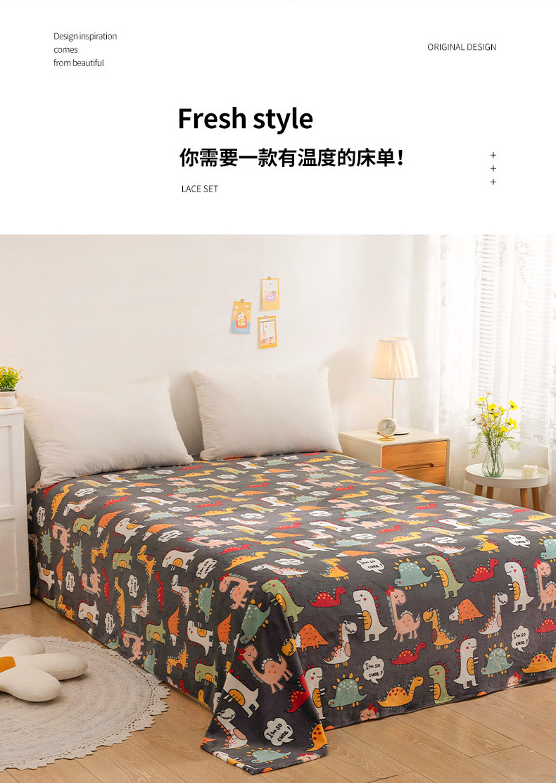 金盛纺 2025新款高克重牛奶绒印花系列单床单(可定制) 恐龙王国