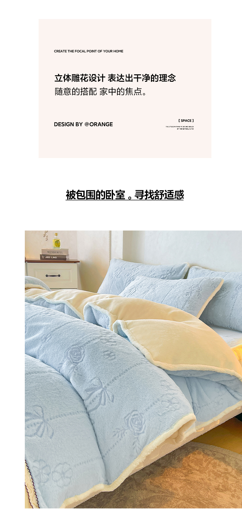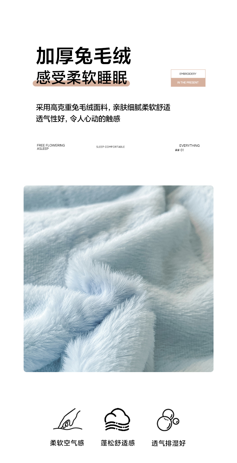 商品名称:眠势力 2025新款兔毛绒雕花被套冬季兔兔绒加绒保暖被罩 若溪-霜兰