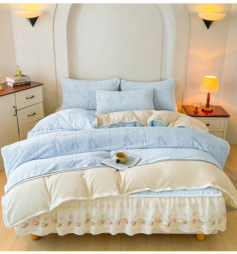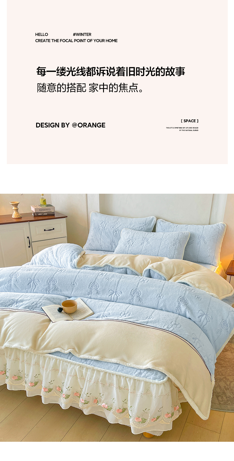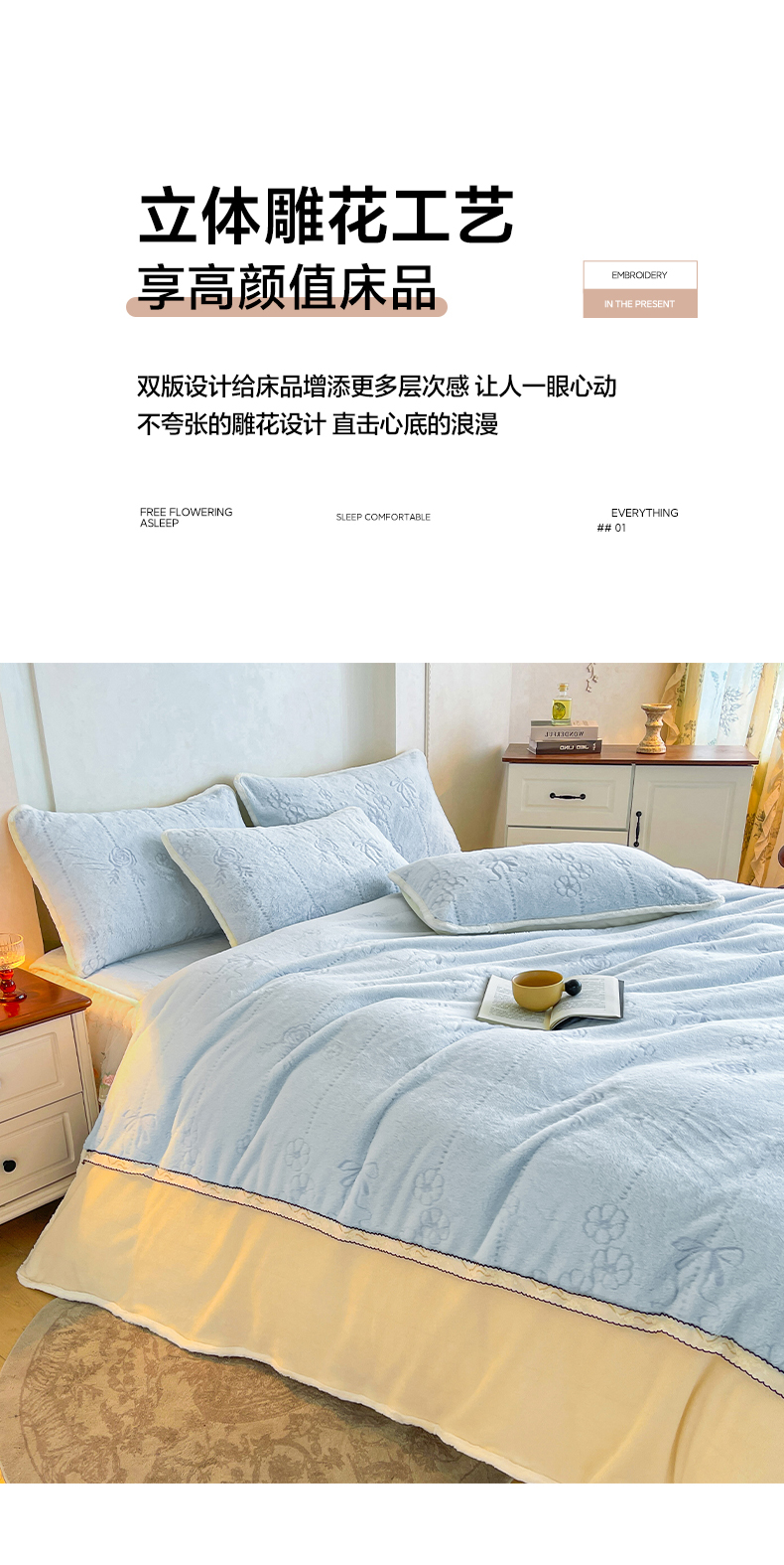 (总)眠势力 2025新款兔毛绒雕花四件套冬季兔兔绒加绒被套床裙款床笠套件带刺绣花边,繁花-沁粉,繁花-灰紫,繁花-绒绿,繁花-霜兰,若溪-灰紫,若溪-沁粉,若溪-绒绿,若溪-霜兰