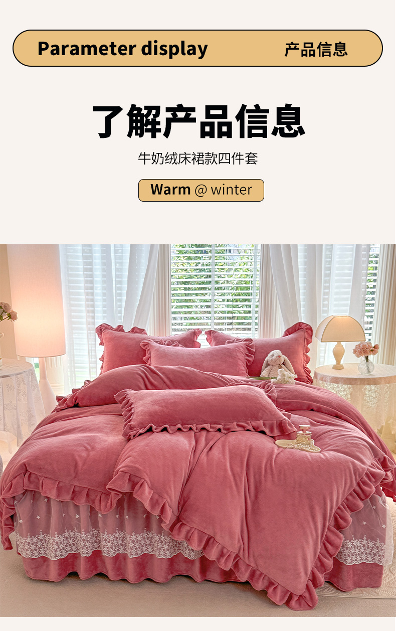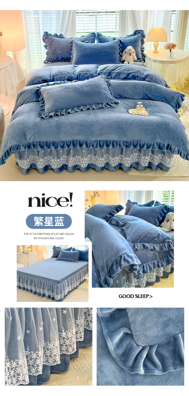 当前位置: 91家纺网 > 商品网购 > 床品套件 > 四件套 > 牛奶绒四件套 > 优家居 2025秋冬高克重牛奶绒床裙款四件套纯色蕾丝边花边刺绣法式公主风床裙款被套 冰川灰