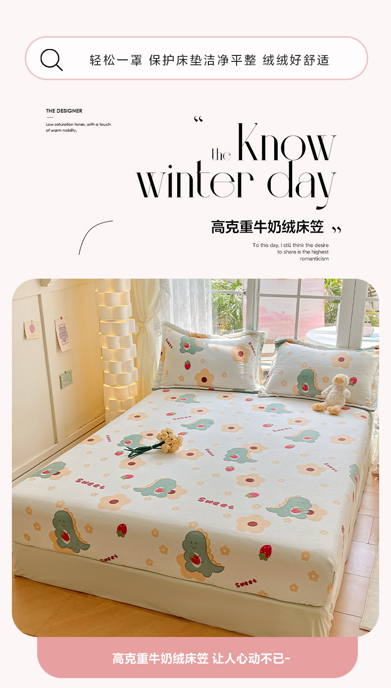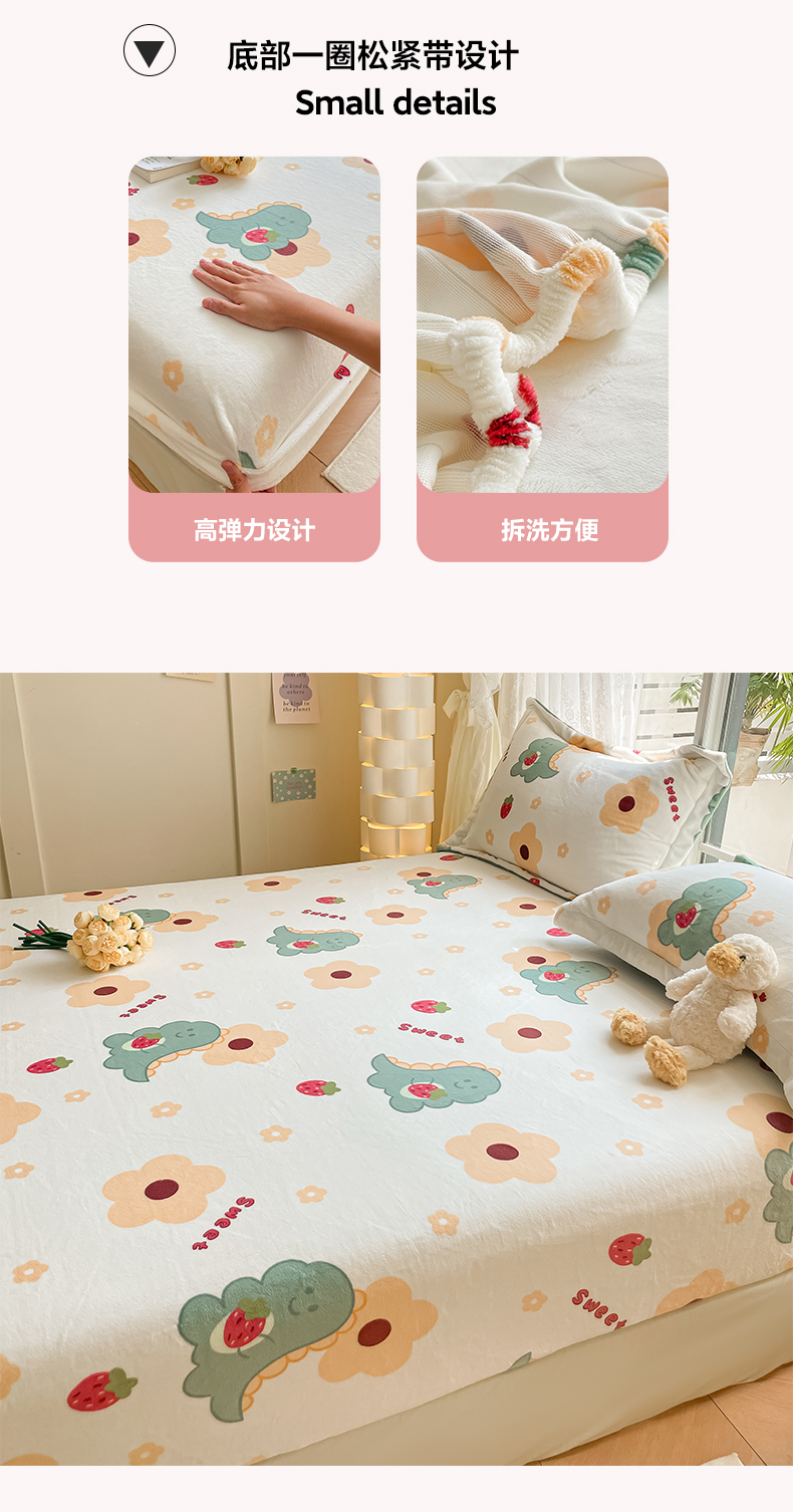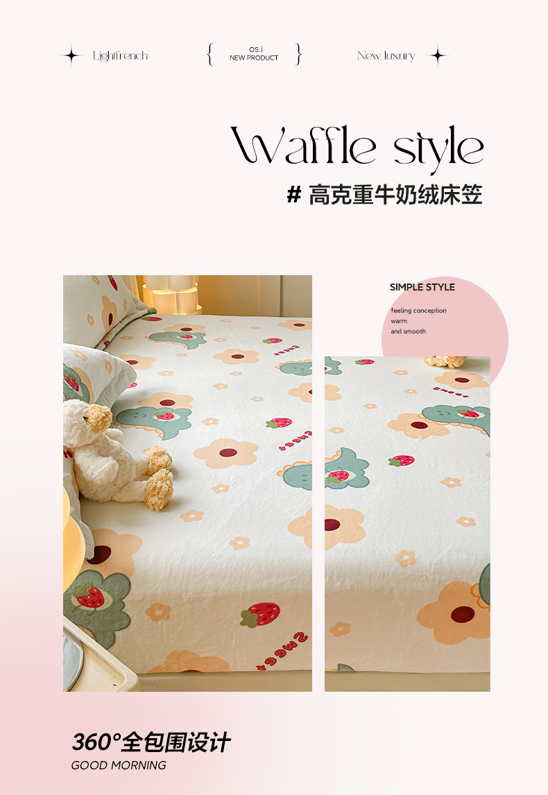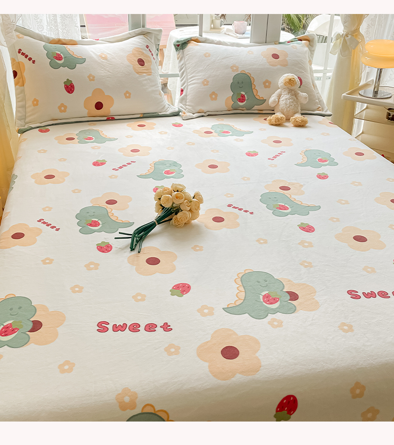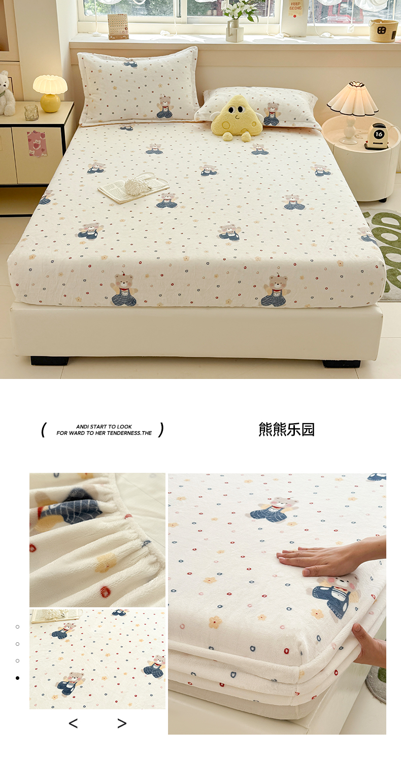 商品名称:金盛纺 2025新款高克重牛奶绒印花系列单床笠(可定制) 萌萌哒
