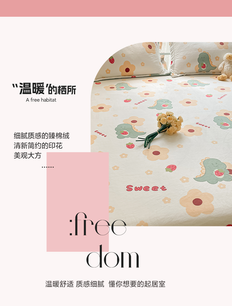 金盛纺 2025新款高克重牛奶绒印花系列单床笠(可定制) 萌萌哒
