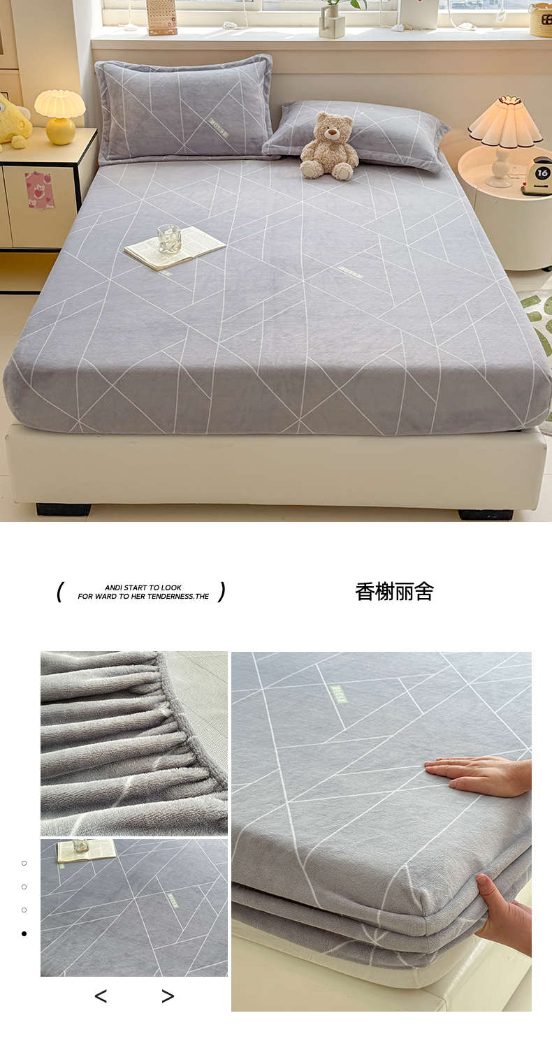 商品名称:金盛纺 2025新款高克重牛奶绒印花系列单床笠(可定制) 墨染