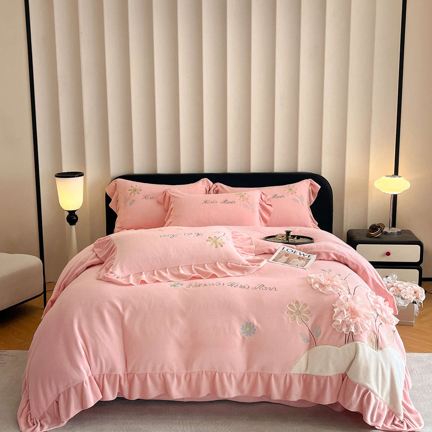 爱家(原缔乐家纺) 2025新款A类高克重牛奶绒立体花刺绣四件套-花蜜 花蜜-公主粉
