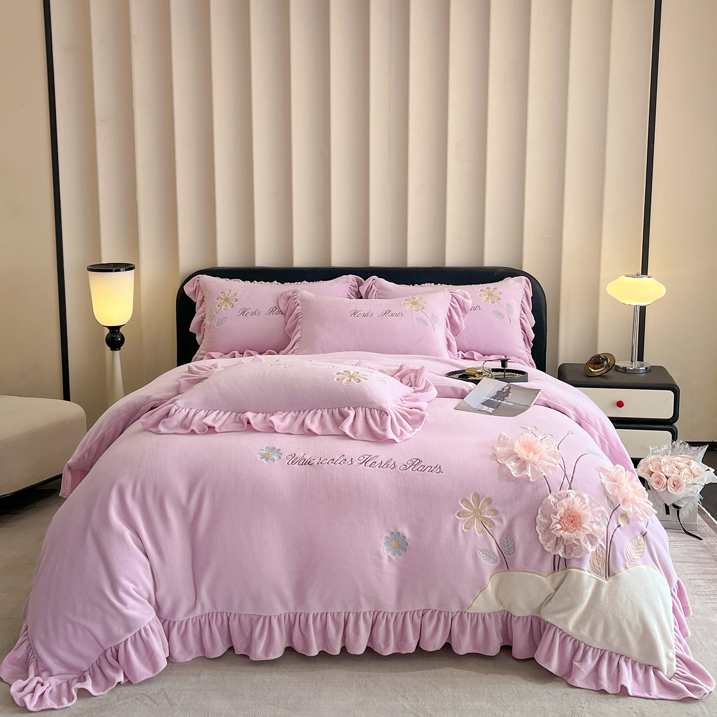 (总)爱家(原缔乐家纺) 2025新款A类高克重牛奶绒立体花刺绣四件套-花蜜,花蜜-公主粉,花蜜-天空兰,花蜜-奶昔白,花蜜-梦幻紫