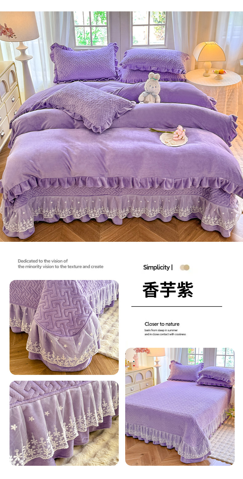 (总)优家居 2025新品240克高克重牛奶绒韩版牛奶绒夹棉床裙三件套冬季直播爆款,东方韵-豆沙,东方韵-灰色,东方韵-浅粉,东方韵-浅蓝,东方韵-紫色,东方韵-橙色