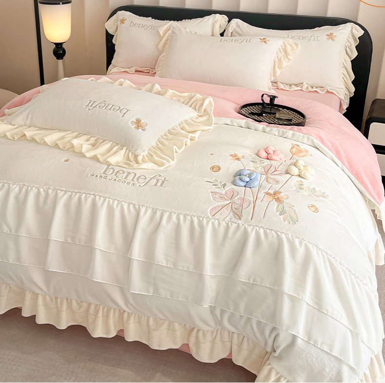 (总)爱家(原缔乐家纺) 2025新款A类高克重牛奶绒立体花刺绣四件套-花蜜,花蜜-公主粉,花蜜-天空兰,花蜜-奶昔白,花蜜-梦幻紫
