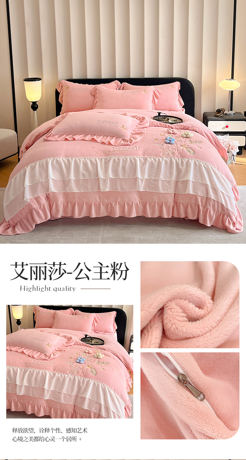 (总)爱家(原缔乐家纺) 2025新款牛奶雕花绒四件套-香香公主,香香公主-公主粉,香香公主-梦幻紫,香香公主-奶油黄