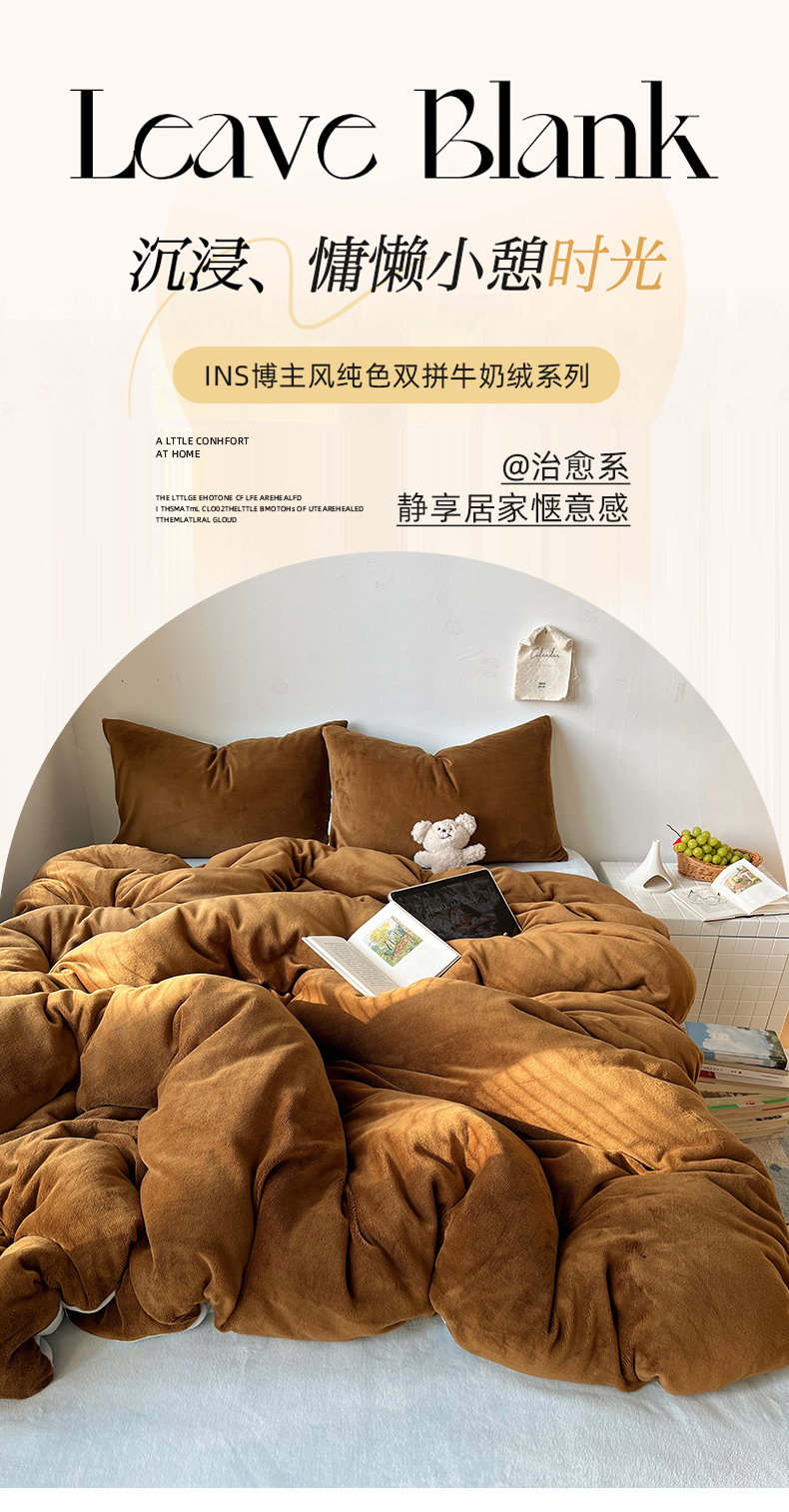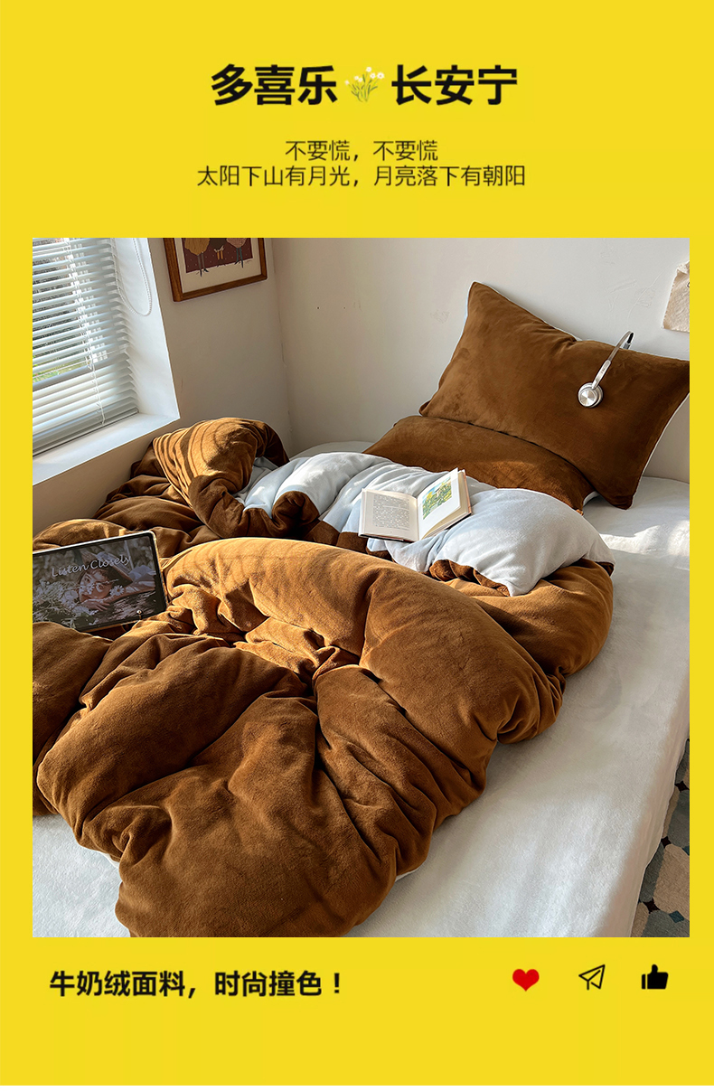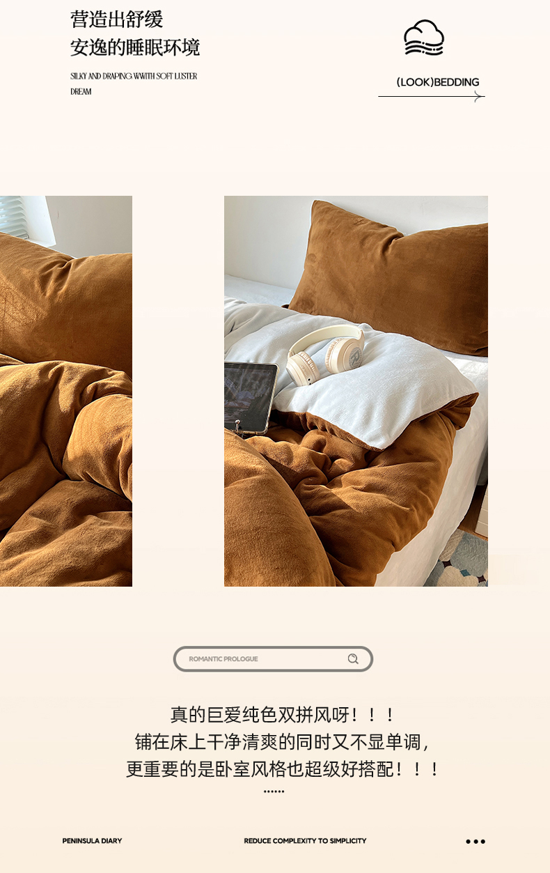 当前位置: 91家纺网 > 商品网购 > 床品套件 > 四件套 > 牛奶绒四件套 > 六巷胡同 2025新款INS博主风纯色双拼A类牛奶绒四件套 可可海盐