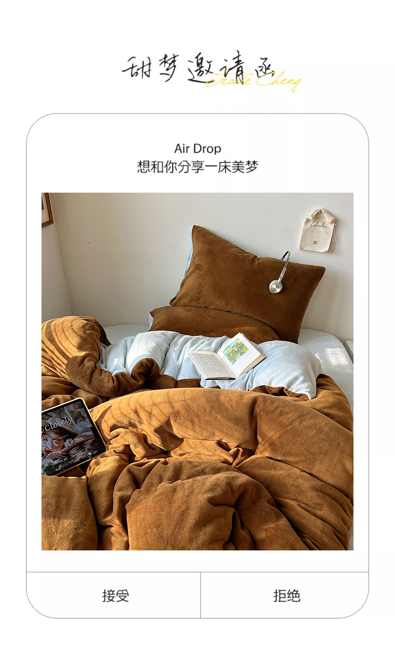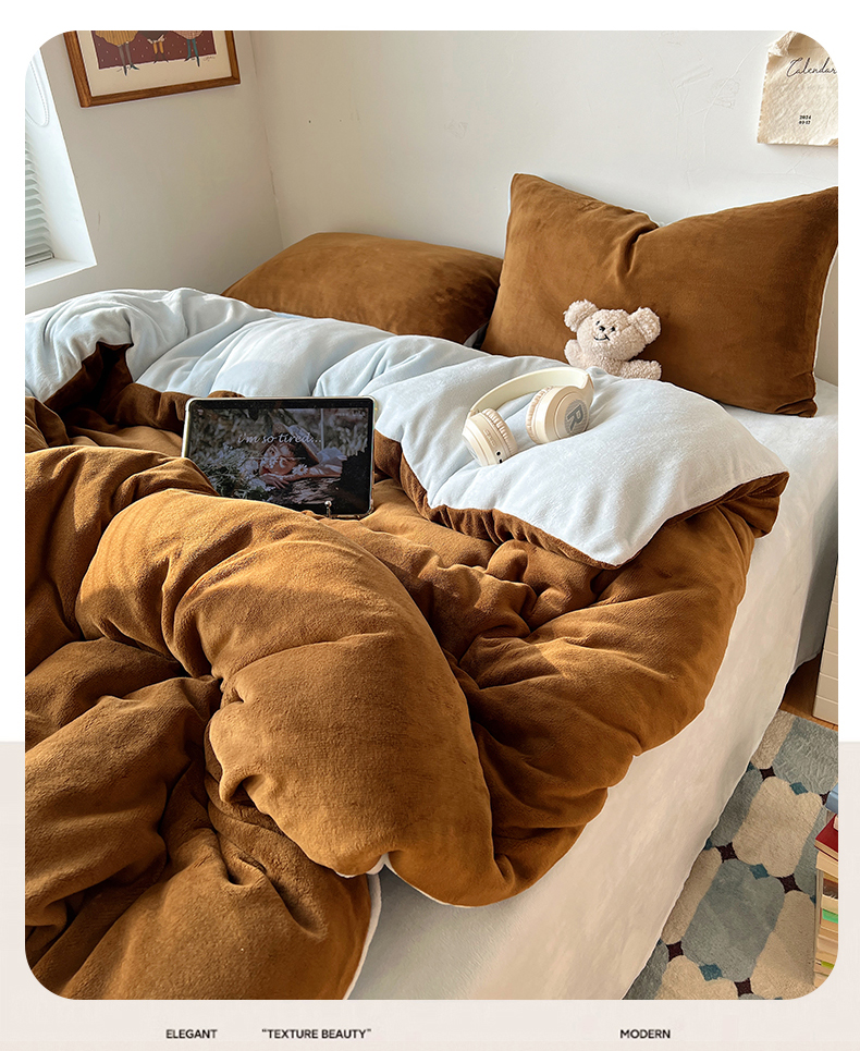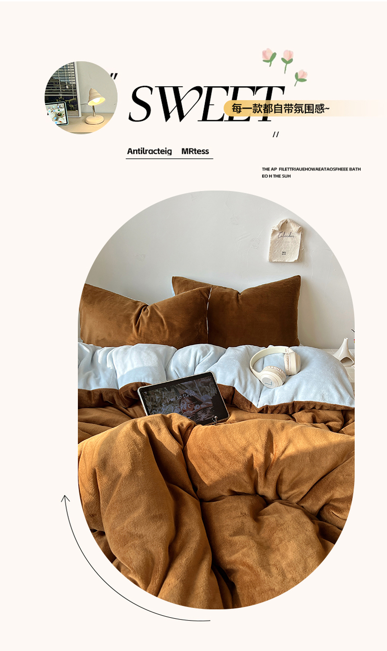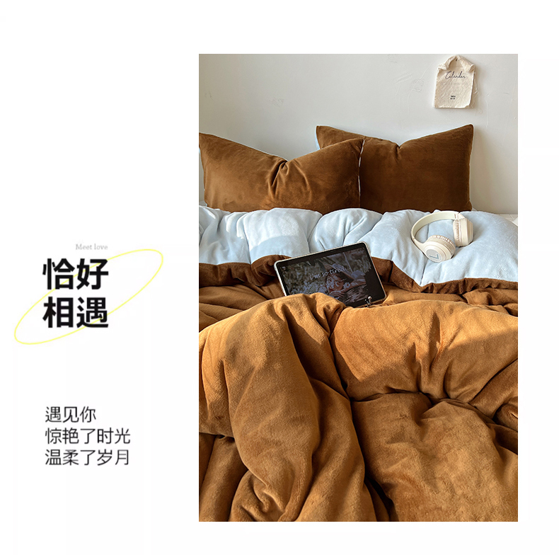 当前位置: 91家纺网 > 商品网购 > 床品套件 > 四件套 > 牛奶绒四件套 > 六巷胡同 2025新款INS博主风纯色双拼A类牛奶绒四件套 可可海盐