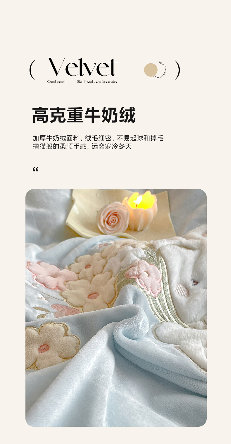 商品名称:畅畅家纺 2025新款轻奢高档冬季工艺款牛奶绒毛巾绣床单床笠四件套 梦境-浅蓝