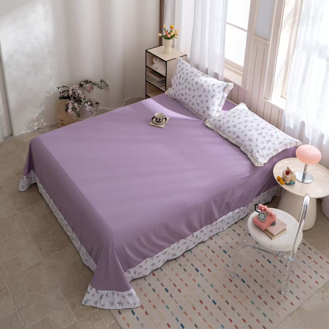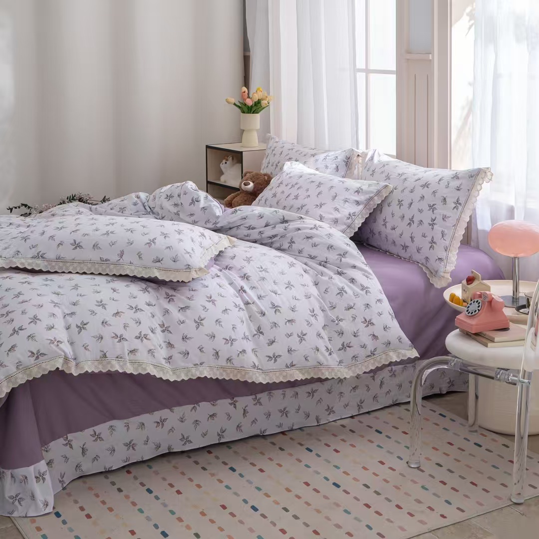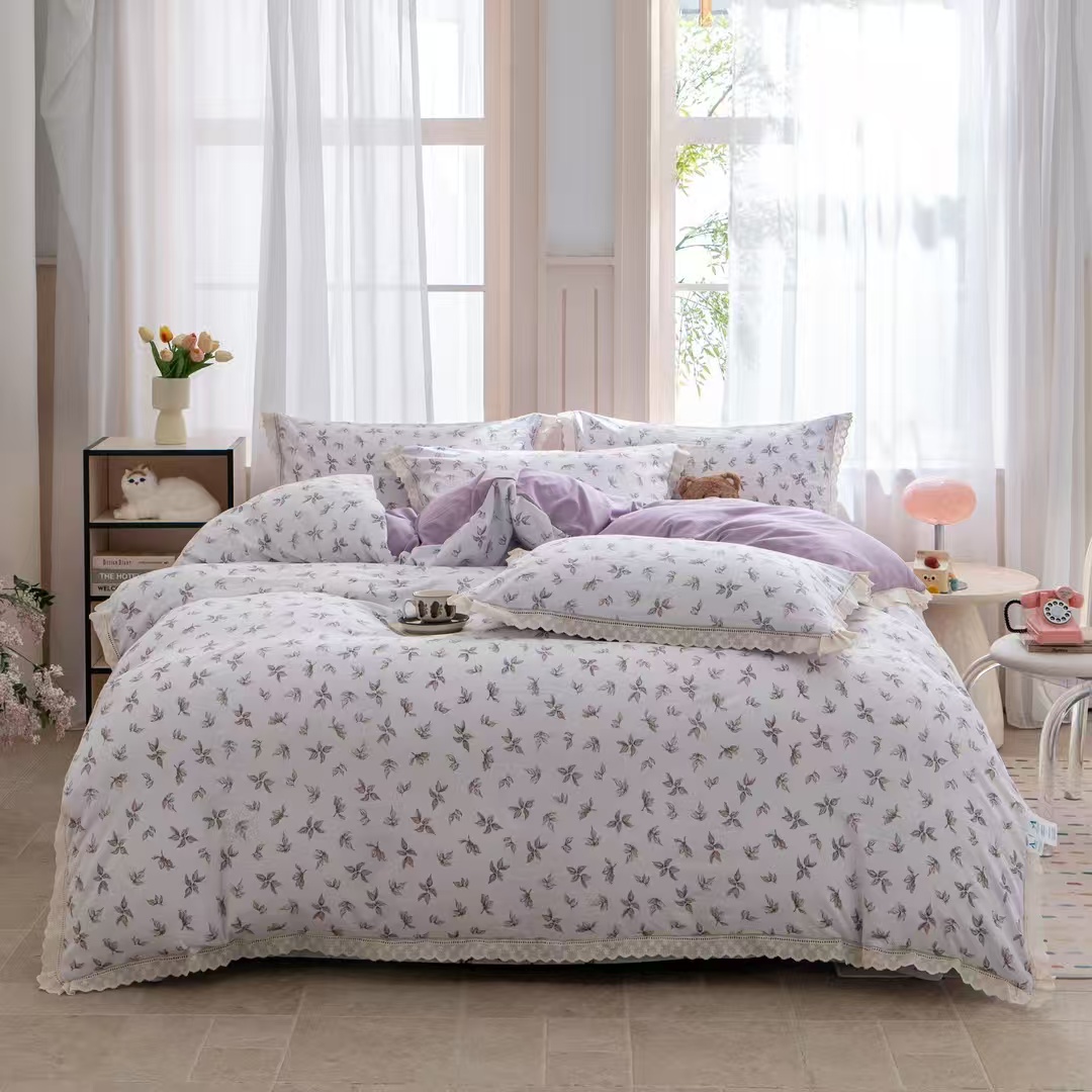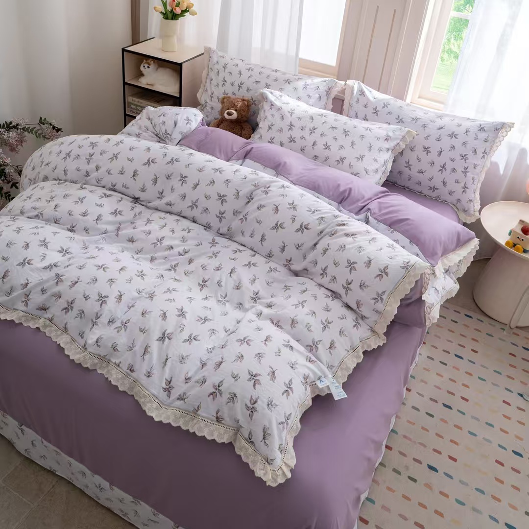 玖琳家纺 2025新款云朵水洗棉皱皱纱精致花边款四件套 浮光屿色