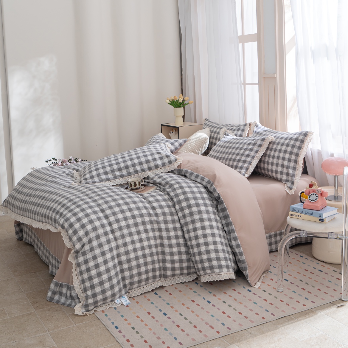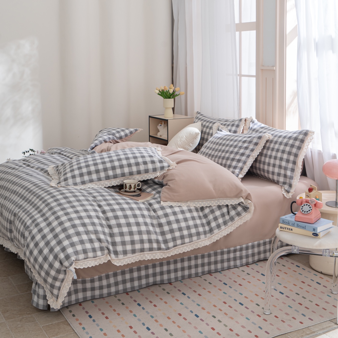 (总) 玖琳家纺 2025新款220g保暖舒适牛奶绒床裙四件套,郁金香,暗香,蝶恋花,蝶舞花语,枫林晚,浮生若梦,格调-蓝,格绿,花影,花影织梦,灰小格,快乐时光,罗马假日,十里格桑,硕果累累,晚秋
