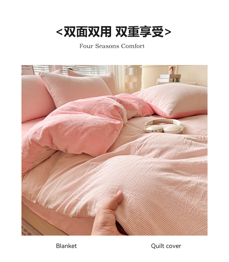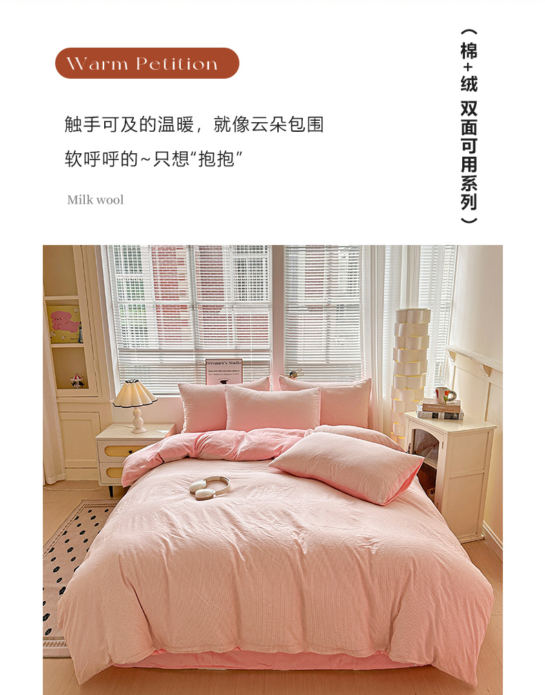 当前位置: 91家纺网 > 商品网购 > 床品套件 > 四件套 > 全棉普通四件套 > 柠萌家居 2025新款无印良品风双拼全棉色织水洗棉加牛奶绒四件套简约全棉拼牛奶绒四件套 提供买家秀 棉+绒粉密条