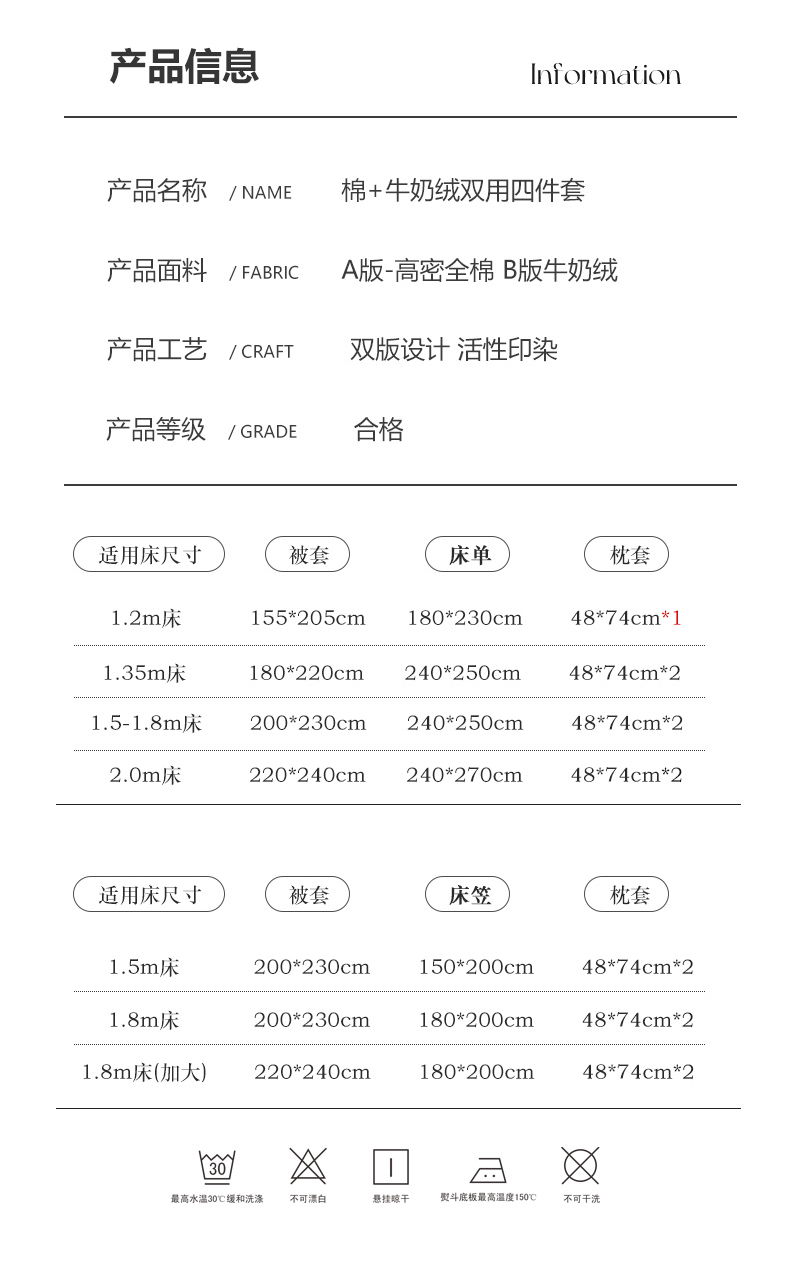 1.5m床笠款四件套被套180*220 | ¥90.00 |