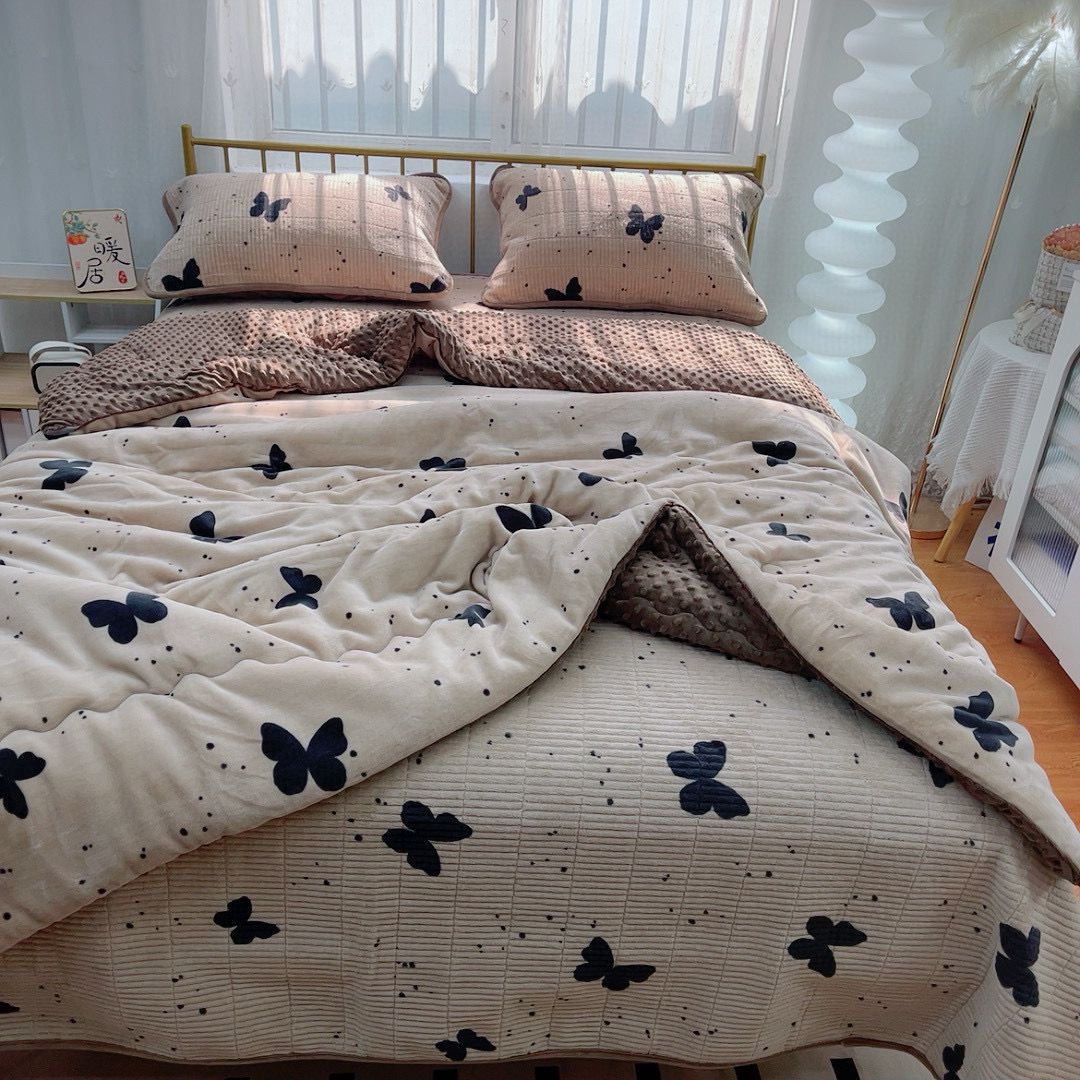 (总)暖居 2026新款一面纯棉一面绒床盖+同款纯棉豆豆被跑量,兰意,冰淇淋,绿芽,奶油波罗,森系绿野,疏影,樱桃密果,黑巧豹纹,小花,星月